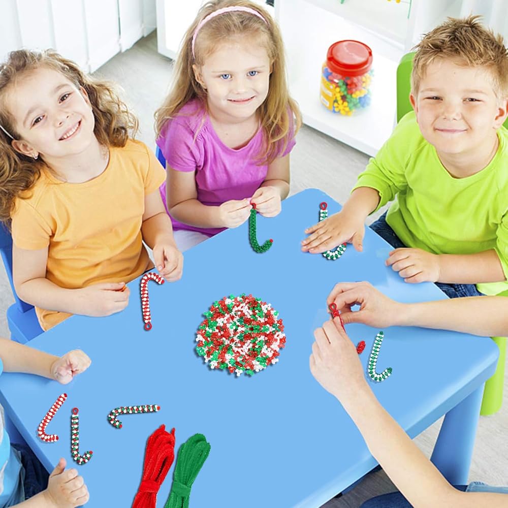 خرز Adiornchse لعيد الميلاد ثلاثي الشكل 2000 قطعة من الخرز البلاستيكي للحرف اليدوية للعطلات للأطفال خرزة حمراء وبيضاء لحرف قصب الحلوى مجموعة صنع الزينة