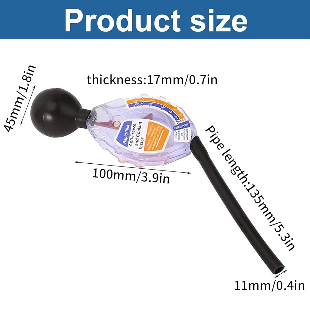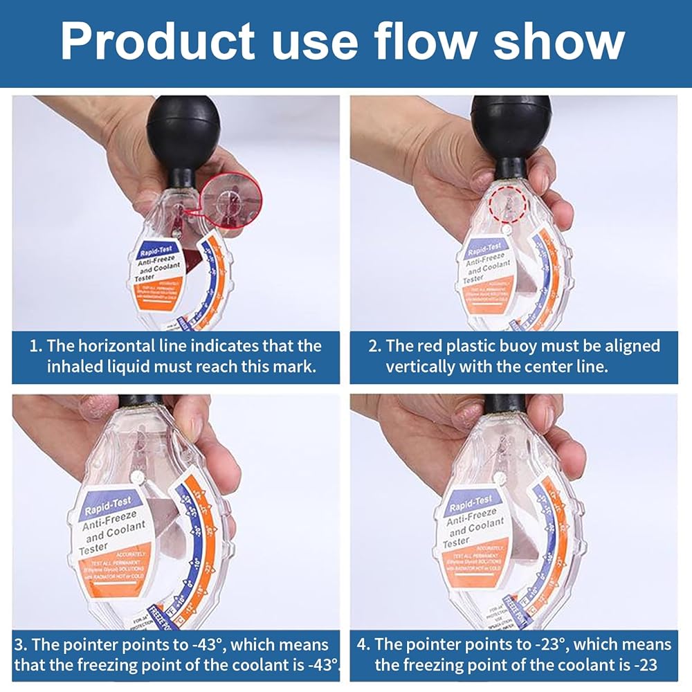 • تشغيل سهل الاستخدام: مصمم لسهولة الاستخدام، ما عليك سوى إدخال الخرطوم في خزان سائل التبريد لسحب مانع التجمد إلى الخط المحدد. مع تغير درجة حرارة السائل، يشير مؤشر القرص إلى نقطة التجمد، مما يسمح بإجراء تقييمات سريعة وسهلة لظروف سائل التبريد لديك وضمان تشغيل سيارتك بسلاسة.