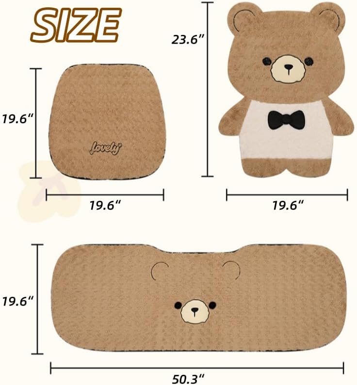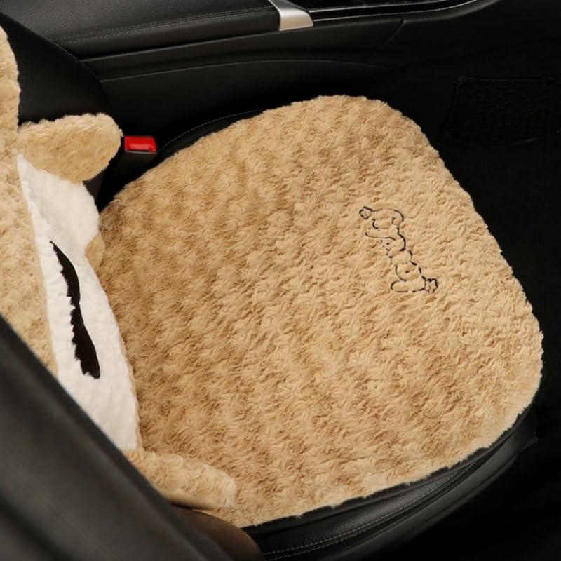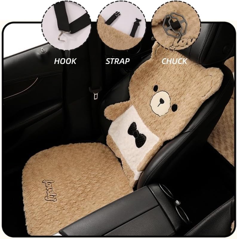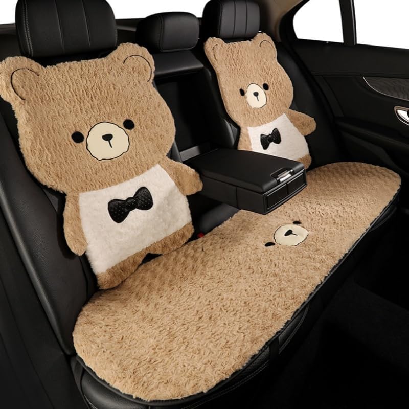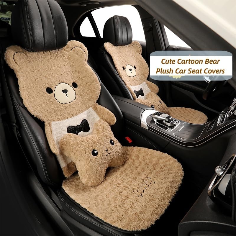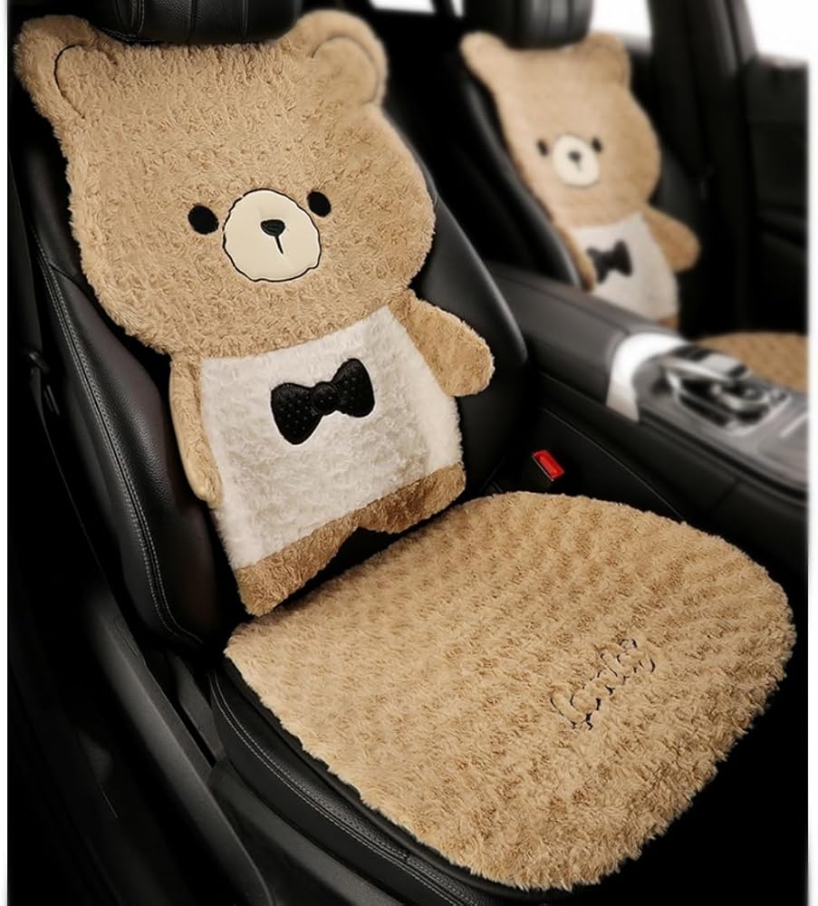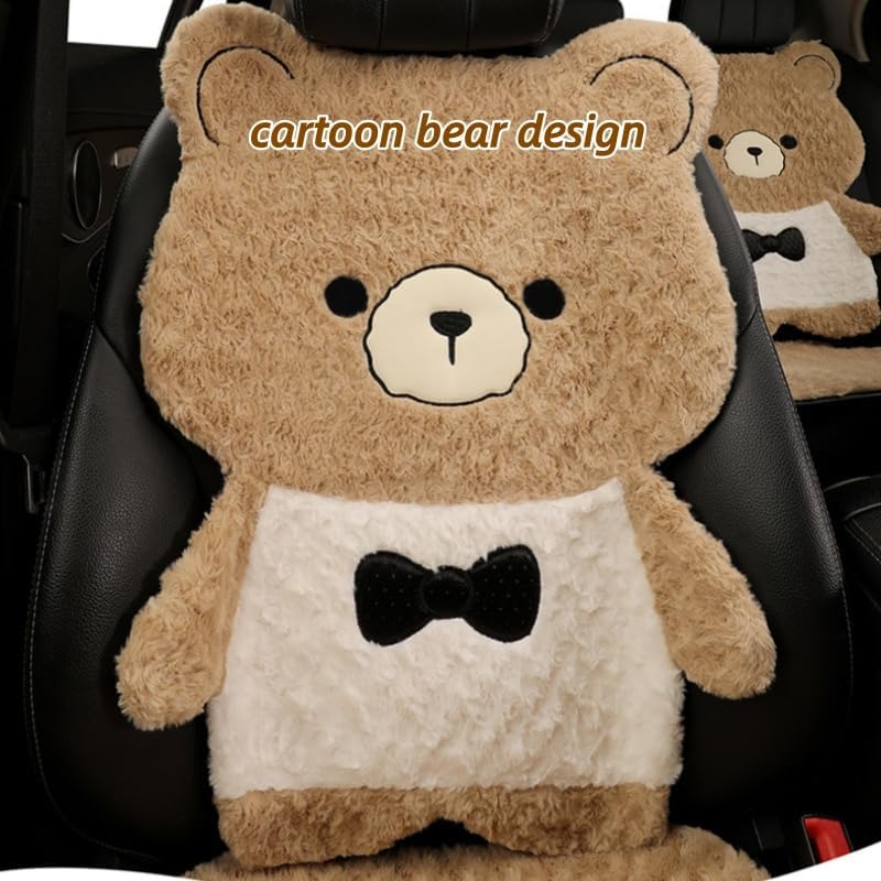 Cute Cartoon Bear Plush Car Seat Covers - Features a full-set cute bear shape (headrest + backrest + seat pad) — instantly adds playful, charming vibes to your car interior, ideal for women who love cute decor.