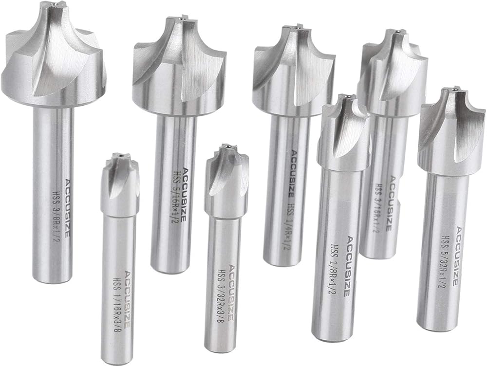 اتهم الأدوات الصناعية H.S.S. طقم مطحنة نهاية دائرية للزاوية 4 قطع مقاس من 1/2 بوصة إلى 3/4 بوصة، ساق 3/4 بوصة، 1011-0004