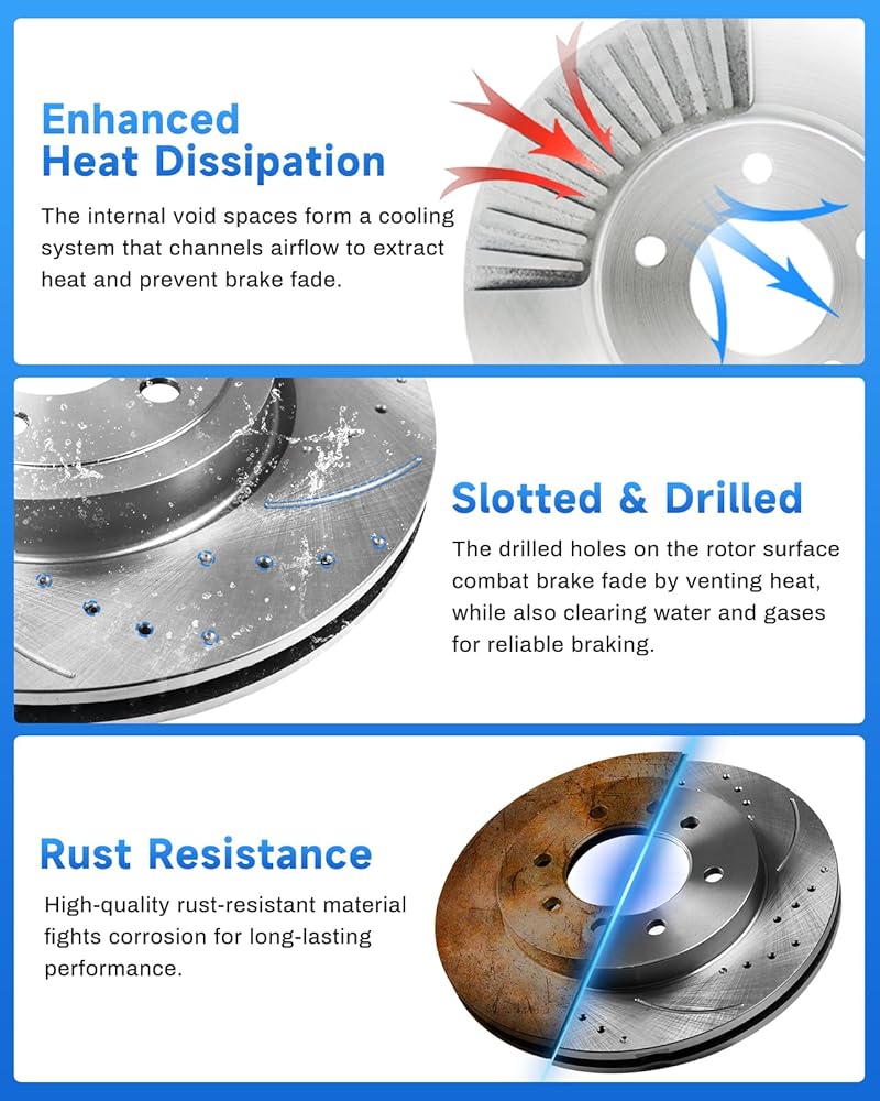 【يسلط الضوء على مجموعة الفرامل الاستثنائية】تتميز مجموعة الفرامل هذه بطبقة مقاومة للصدأ، ووسادات سيراميك عالية الكربون خالية من الأسبستوس لضمان الكبح الهادئ، وتصميم تبديد الحرارة بشاحن توربيني لتحسين الأداء. لقد اجتاز اختبار رش الملح لمدة 720 ساعة ويتوافق مع لوائح المركبات العضوية المتطايرة الأمريكية. مع التركيب السهل، فإنه يوفر رحلة قيادة موثوقة وسلسة.