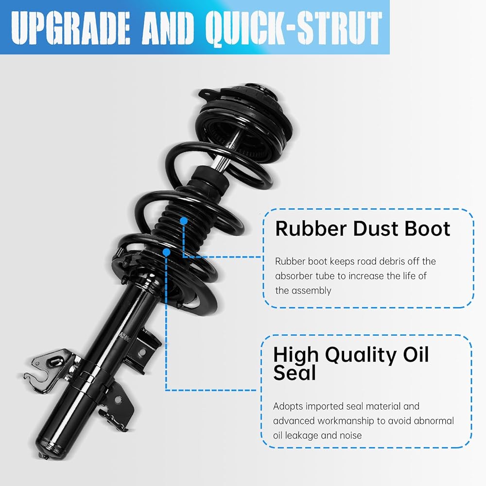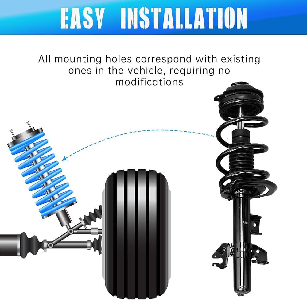 【Easy installation】OEM design direct complete strut assembly equipped with strut coil spring & mounts, buckle holes are consistent with those in the original vehicle, so you can remove and replace without modifications
