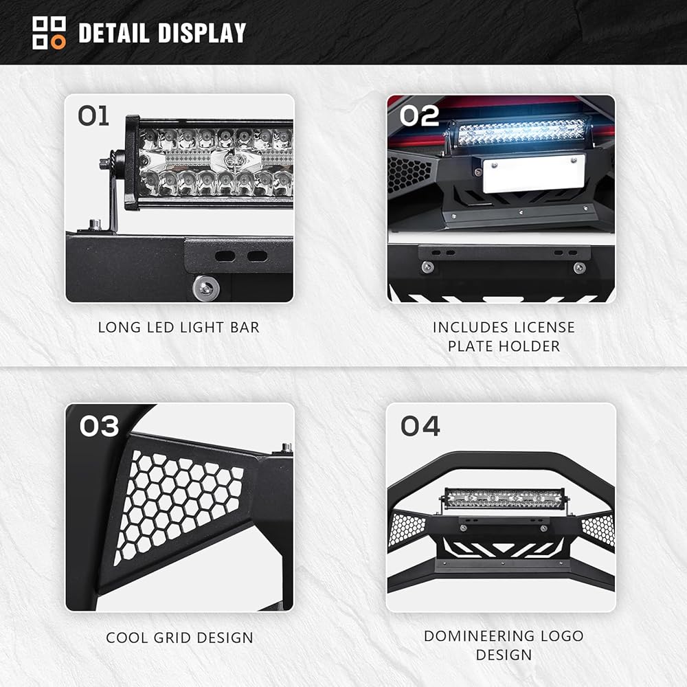 【ملحقات متعددة الوظائف】: يأتي واقي الشبكة الخاص بنا مزودًا بقضبان إضاءة وإطار لوحة ترخيص، مما يوفر إضاءة إضافية للقيادة الليلية دون الحاجة إلى عمليات شراء إضافية. يتميز تصميمنا بفتحات وفتحات مثقوبة مسبقًا، مما يسمح بسهولة الإزالة أو الاستبدال إذا رغبت في ذلك.