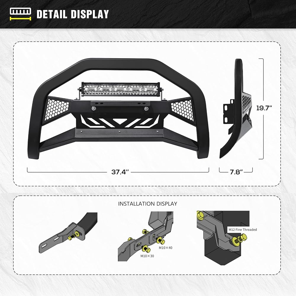 【ملاءمة مثالية】: يتوافق شريط الثور الخاص بنا تمامًا مع موديلات 2005 2006 2007 2008 2009 2010 2011 2012 2013 2014 2015 2016 2017 2018 2019 2020 2021 Nissan Frontier. ومع ذلك، يرجى ملاحظة أن هذا الشريط الثور قد يتداخل مع أجهزة الاستشعار الأمامية.