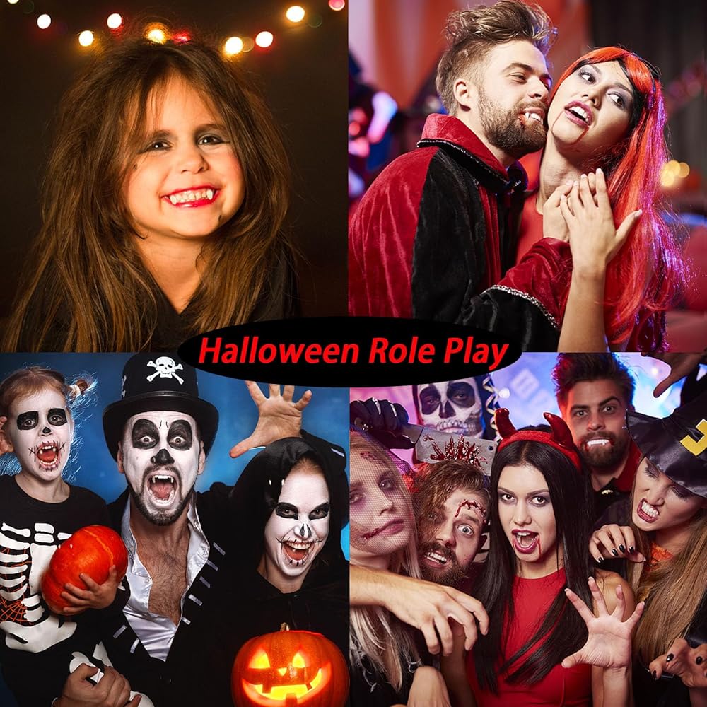• سهل الارتداء وواقعي: ارتداء أسنان مصاصي الدماء هذه سهل ومريح للغاية. بالإضافة إلى ذلك، يمكن لهذه الأنياب المزيفة أن تجعل زي الهالوين الخاص بك أكثر واقعية.