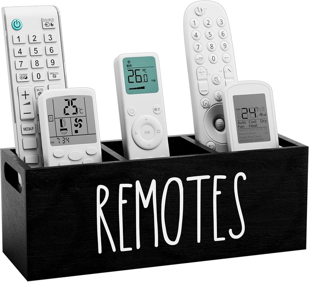 【اكتساب سريع】 هل سئمت من فقدان أجهزة التحكم عن بعد الخاصة بك؟ يتيح التصميم المفتوح لحامل جهاز التحكم عن بعد الريفي إمكانية الوصول السريع والسهل إلى جميع أجهزة التحكم عن بعد الخاصة بك، مما يجعل من السهل العثور على الجهاز الذي تحتاجه دون البحث، كما أن صندوق التحكم عن بعد يجعل منزلك ومكتبك أكثر تنظيمًا.