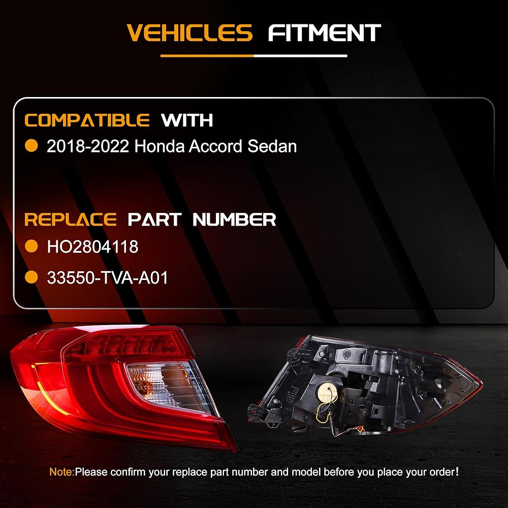 متوافق مع: مجموعة المصابيح الخلفية المتوافقة مع سيارة هوندا أكورد سيدان 2006-2007، جانب السائق الأيسر