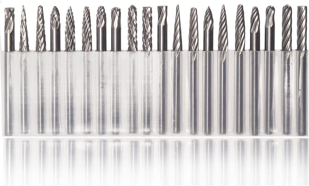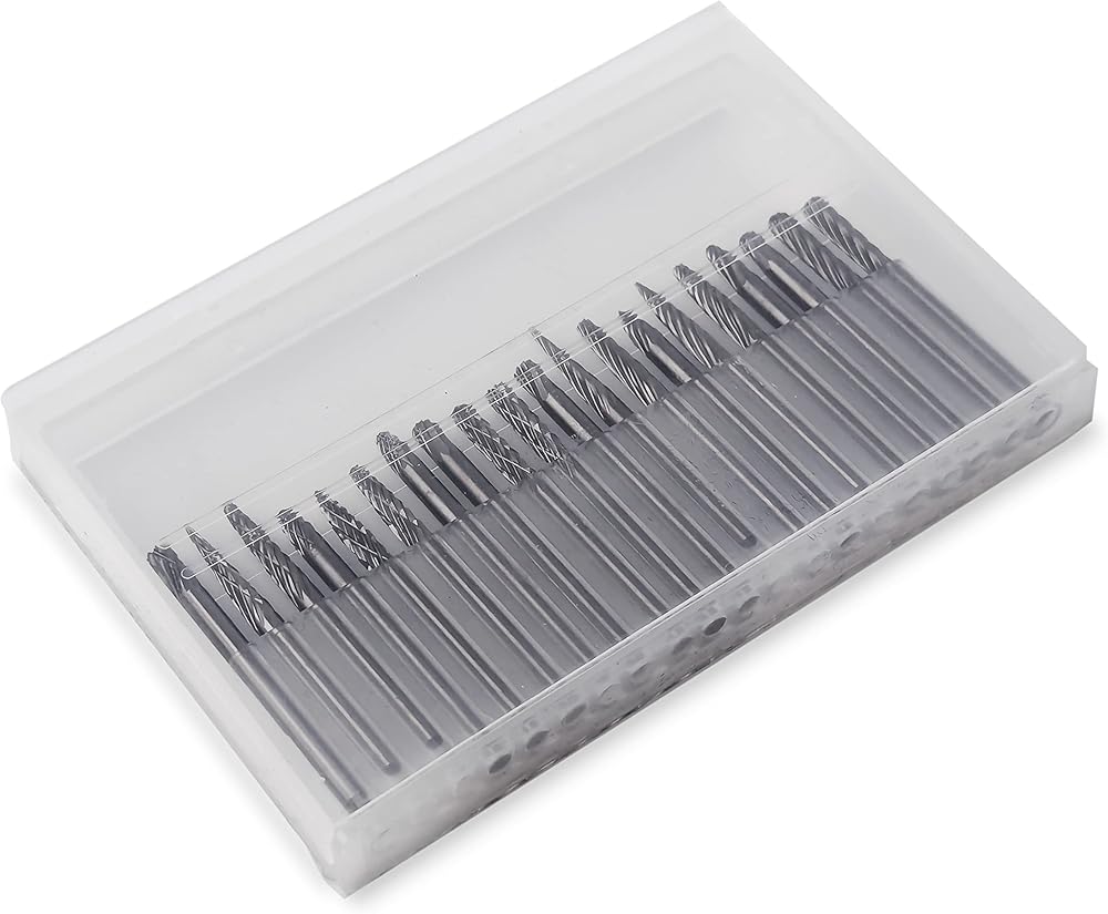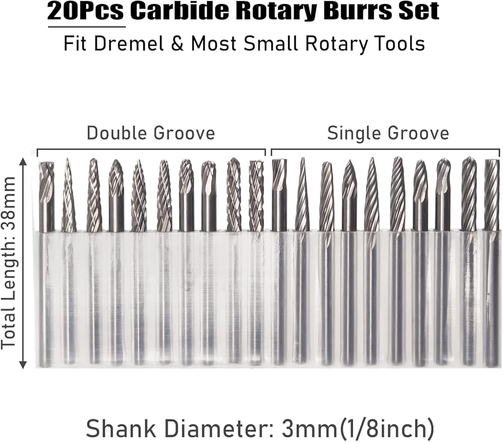 • 👍Ten Models Two Groove Types👍20 pcs Solid Carbide Rotary Burrs Set is divided into single and double grooves, and each groove has ten models.