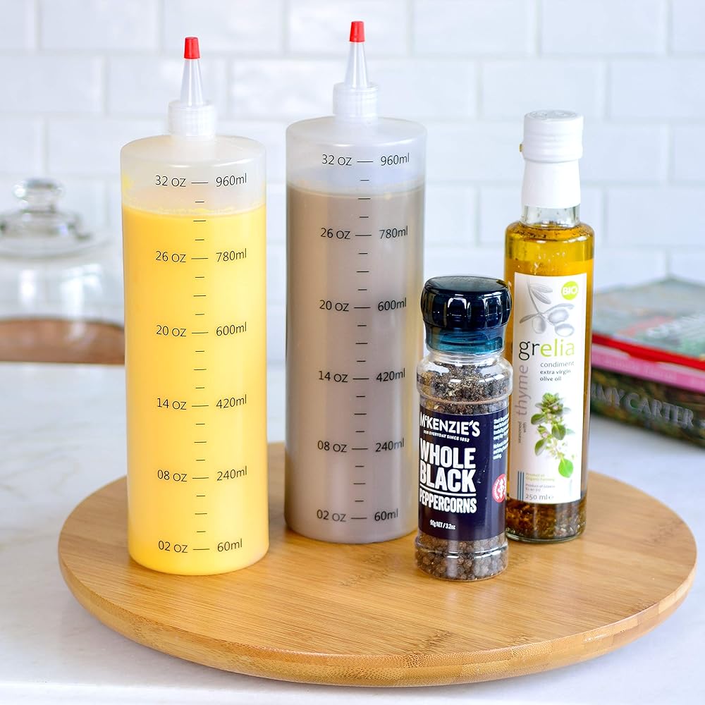 • زجاجات ضغط بلاستيكية أفضل قيمة: مجموعة من 4 زجاجات ضغط بلاستيكية بأغطية حمراء، زجاجات ضغط سعة 32 أونصة من أجل العديد من الصلصات والحرف اليدوية والاستخدامات الأخرى.