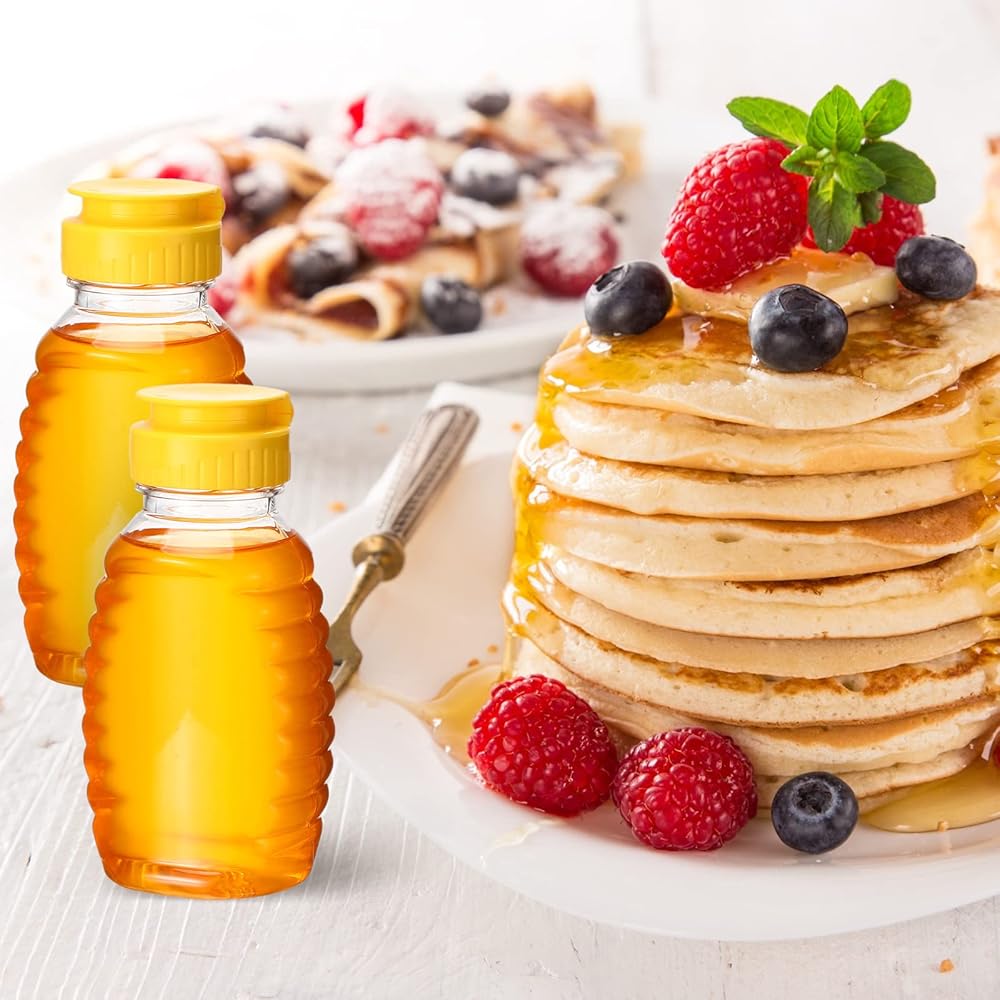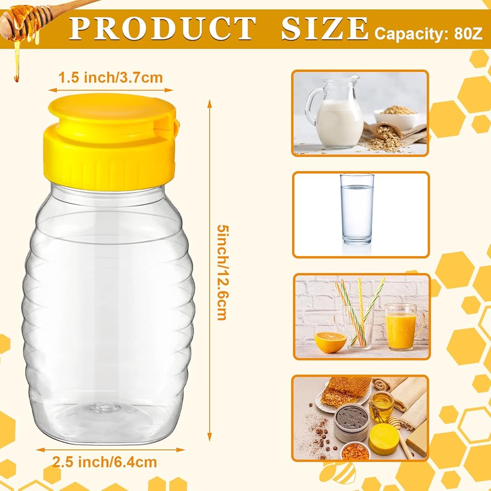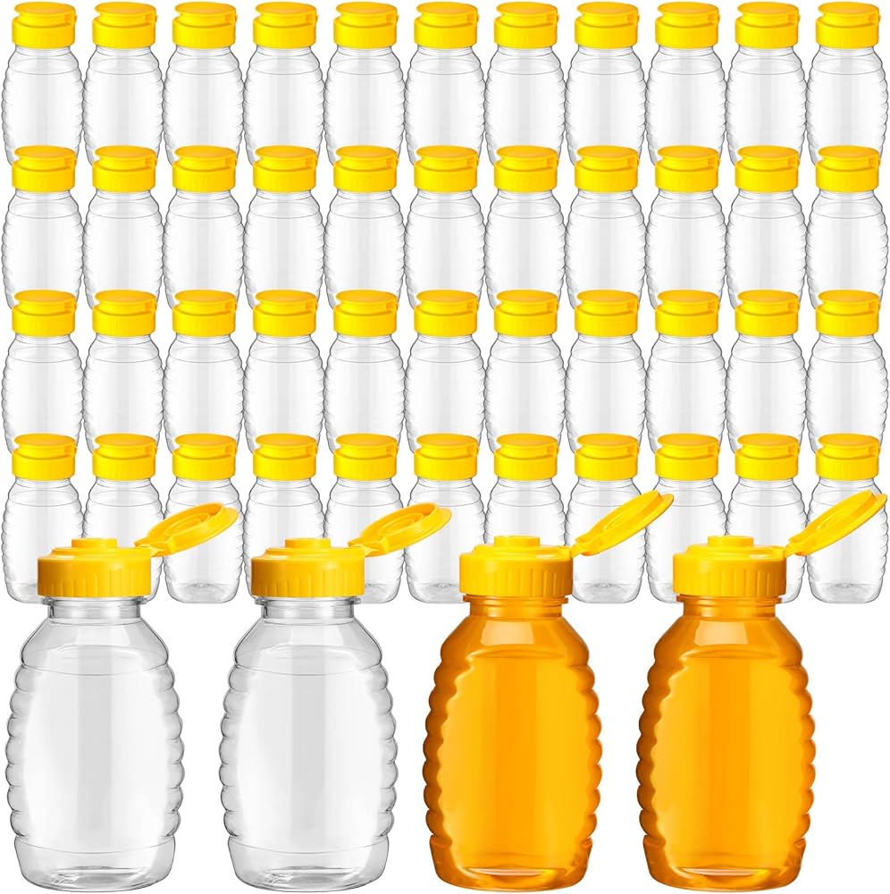 مجموعة زجاجات العسل البلاستيكية الشفافة: تحتوي العبوة على 48 قطعة من حاويات العسل البلاستيكية، ويمكن أن تلبي الكمية الكبيرة احتياجات الاستخدام والاستبدال في الحياة اليومية أو يمكنك مشاركتها مع جيرانك وأصدقائك