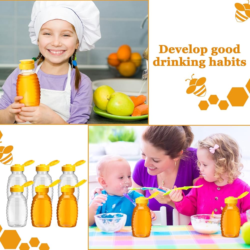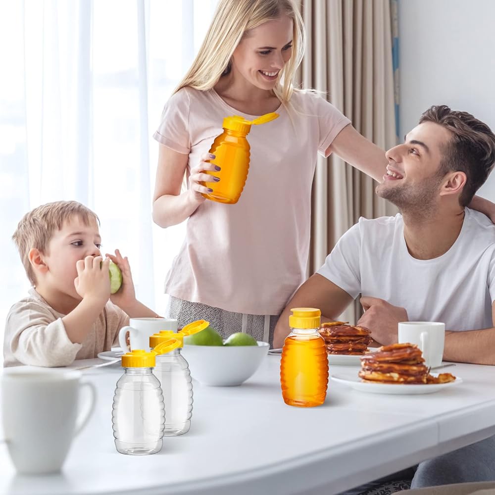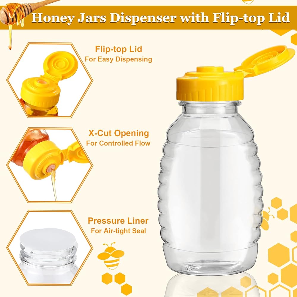 يمكن لهذه الزجاجات البلاستيكية ذات الجزء العلوي القلاب أن تمنع التسرب وتحافظ على العسل لذيذًا، ويمكنك مشاركتها مع أصدقائك وأفراد عائلتك ومربي النحل في حفلات الانتقال إلى منزل جديد والتجمعات المنزلية.
