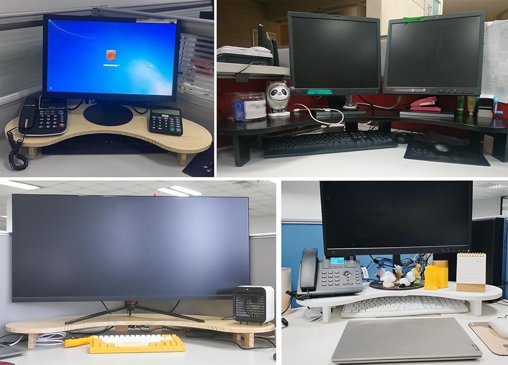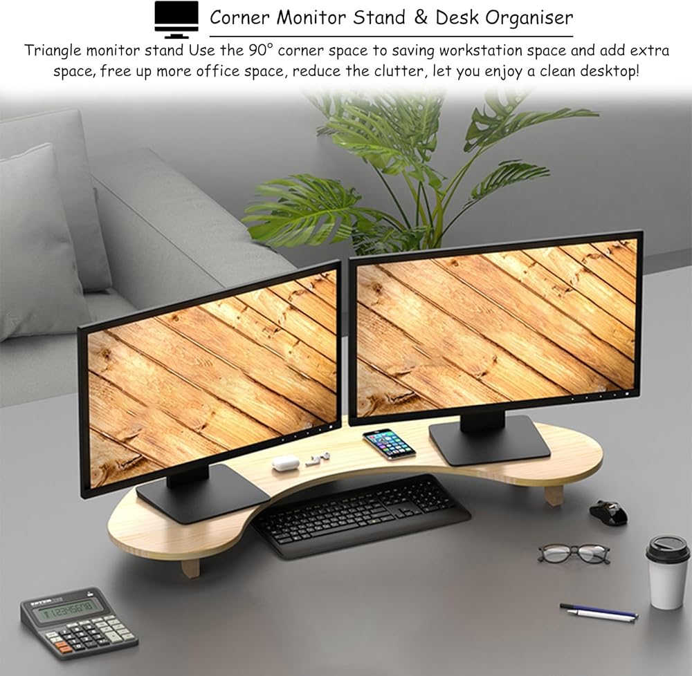 Our corner monitor stand to organise your desk in a decorative way and maximum utilizing your desktop space, let you enjoy a clean desktop! Ergonomic Office Partner - Relieve body fatigue and improve your daily working productivity.Specification:- Material: Solid Pine Wood- Assembly Required: Yes- More Sizes As ShownFeatures:- material,not easy to deform- Save desk space, add extra space- Reduce the body pressure of office workers- Easy to put together- Suitable for computer, laptops, Screen, speakers, printers, TV, all-in-one PC, etc- This is a great gift for anniversaries of family, friends and colleaguesPackage Contents:- 1 x Corner Monitor StandNote:- There may be an error of 1-3 cm due to manual measurement.- There may be chromatic aberration due to the difference between the recording lamp and the display. Please refer to the actual product.Quality Service:- When you encounter any problems with our products, please feel free to contact us, and we will try our best to solve them for you.