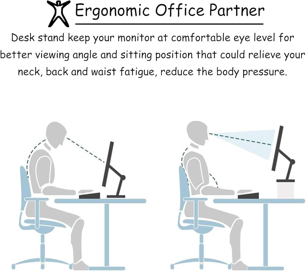 ✅【Ergonomic Design 】Desk stand keep your monitor at comfortable eye level for better viewing angle and sitting position that could relieve your neck, back and waist fatigue, reduce the body pressure, enhancing work efficiency.
