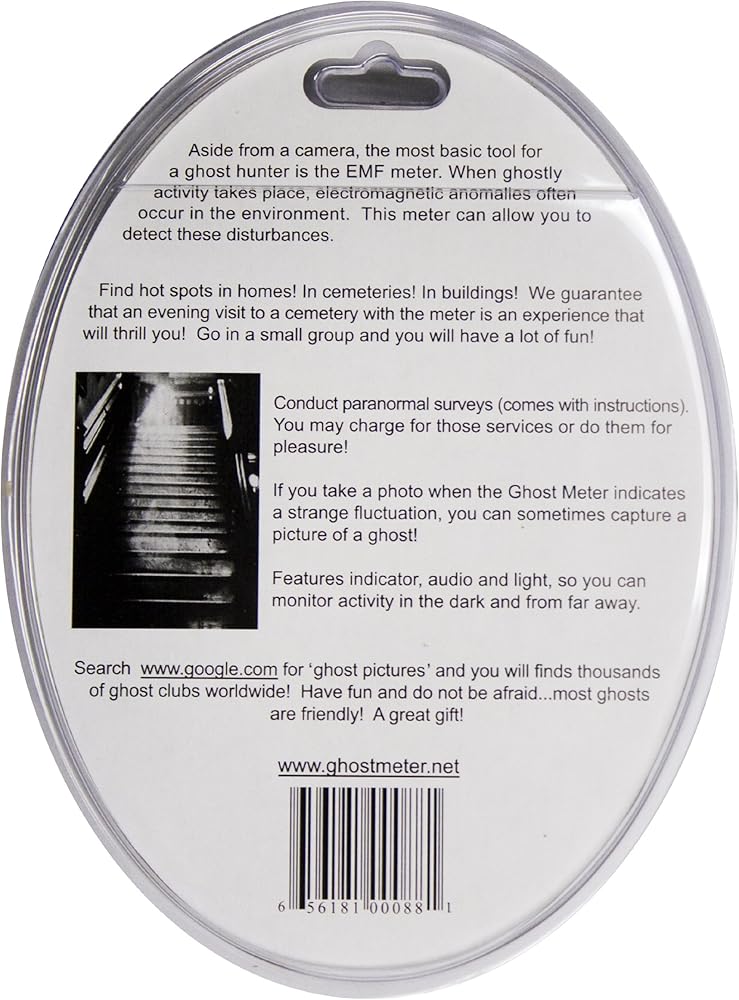 تمت معايرة مقياس الشبح لتجاهل انبعاثات EMF الدقيقة للغاية المحيطة بجسم الإنسان، ومع ذلك لا يزال حساسًا بما يكفي للكشف عن تقلبات طاقة EMF الصغيرة والمميزة وغير المنتظمة الموجودة بشكل متكرر في المواقع المسكونة المشهورة. يوفر مقياس الشبح ثلاثة مؤشرات مؤيدة لقوة انبعاث اي ام اف. شاشة عرض قائمة على الإبرة ومصابيح LED وإشارة صوتية قابلة للتعديل. وقت استجابة هذا المقياس ممتاز، يتفوق بسهولة على عدادات اي ام اف الأكثر تكلفة. كما يمكن تشغيله في الوضع الصامت حتى لا يتداخل مع تسجيلات ظاهرة الصوت الإلكترونية أو تشتيت انتباه المحققين الآخرين أثناء التحقيق. قارن القيمة التي يقدمها هذا المقياس مقارنة بالعلامات التجارية الأخرى. لا يوجد عرض آخر يقترب من توفير هذه المستويات من الميزات والأداء مقابل السعر. لقد رأيت صائدي الأشباح في التلفزيون يستخدمون أجهزة كشف مماثلة. الآن يمكنك الحصول على ما يناسبك والبدء في التحقيق في المجهول. يرجى ملاحظة: هذا المنتج يهدف إلى قياس المجالات الكهربائية، ولا يكتشف الإشعاع النووي.