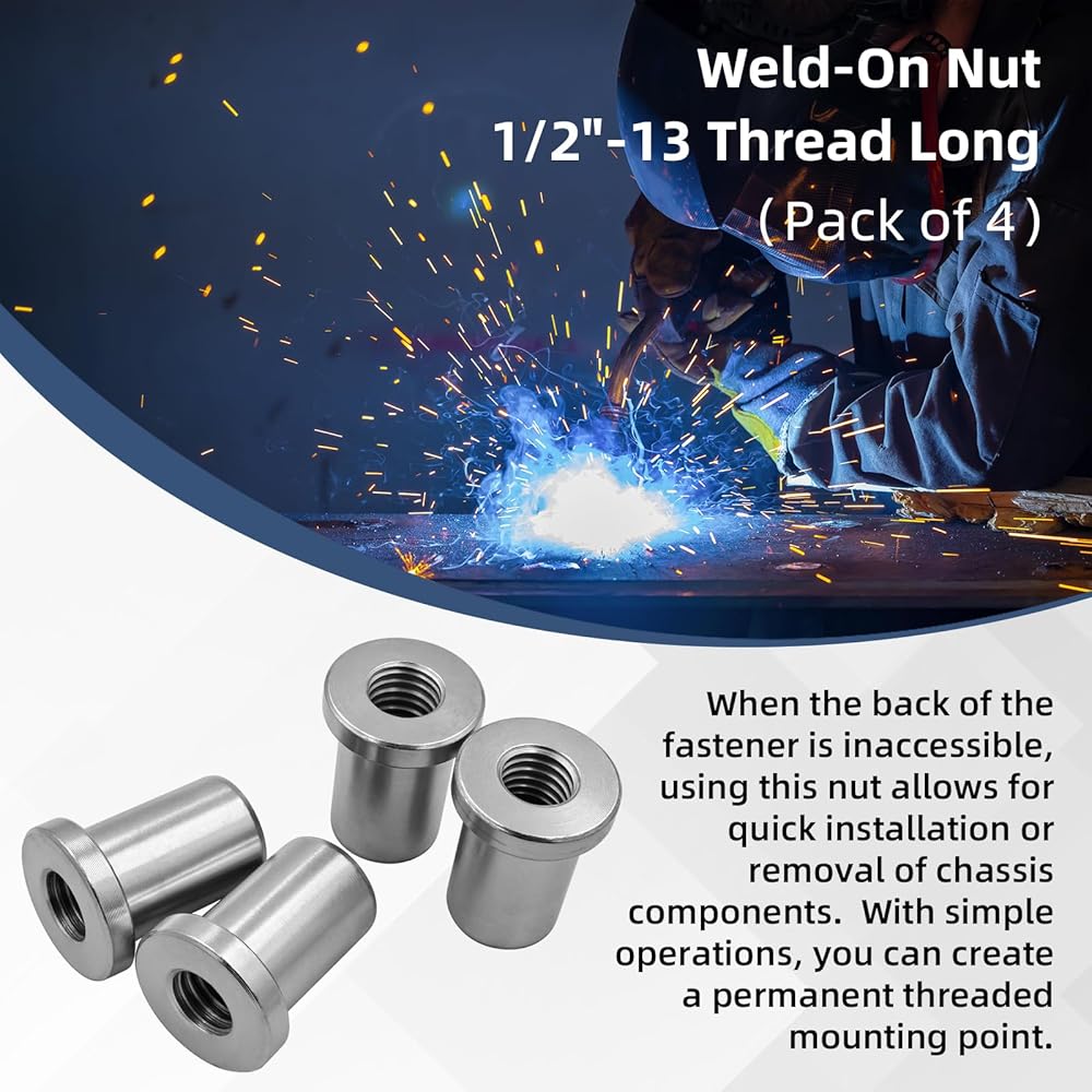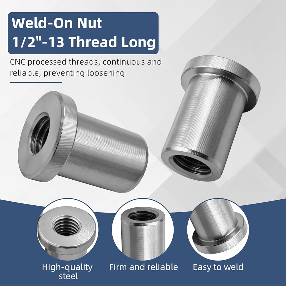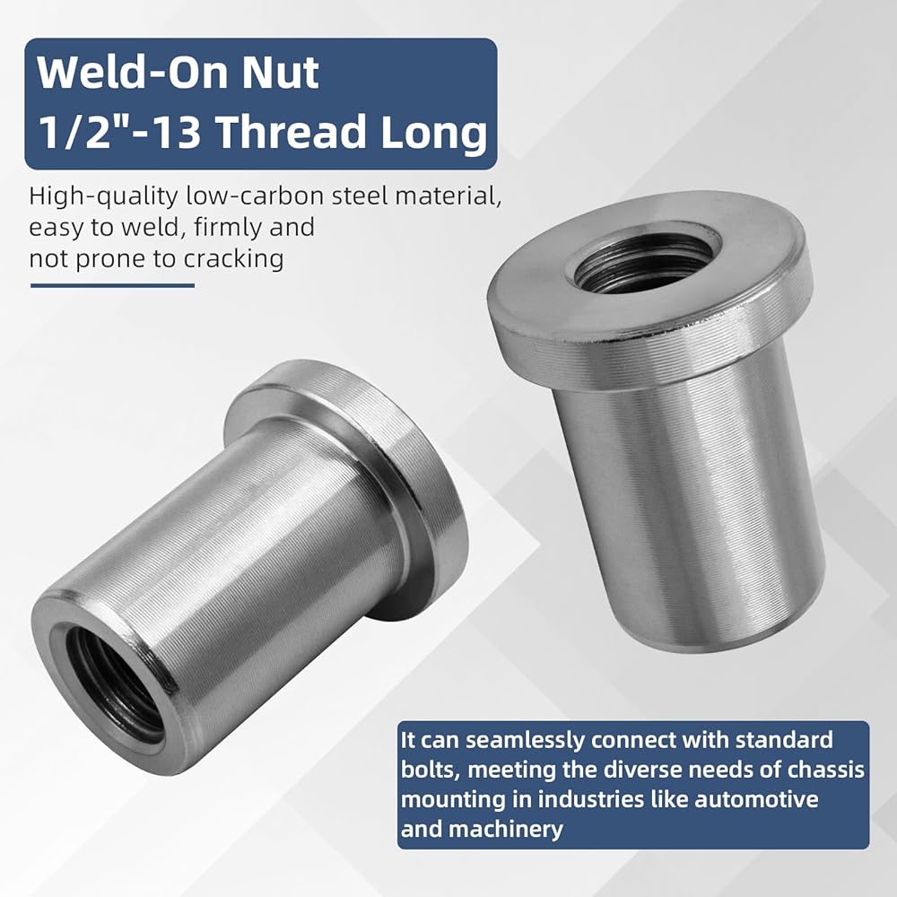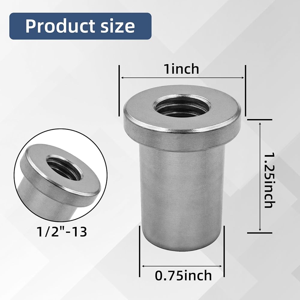 【Precision Thread】These nuts are designed with an accurate 1/2"-13 thread specification. The outer diameter is 1" (inner diameter: 0.750"), and the length is 1.25 inches. They ensure stable and seamless compatibility with standard bolts, meeting various requirements for chassis installation in industries such as automobiles and machinery.