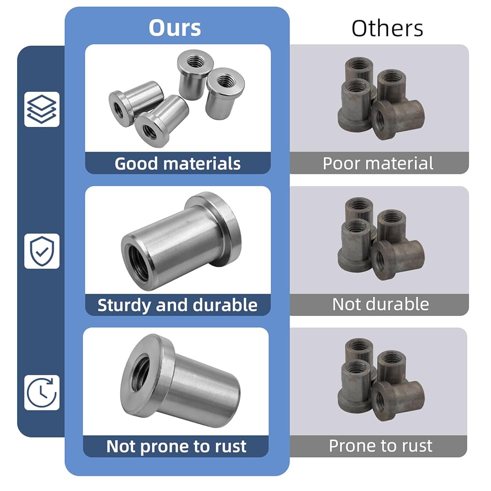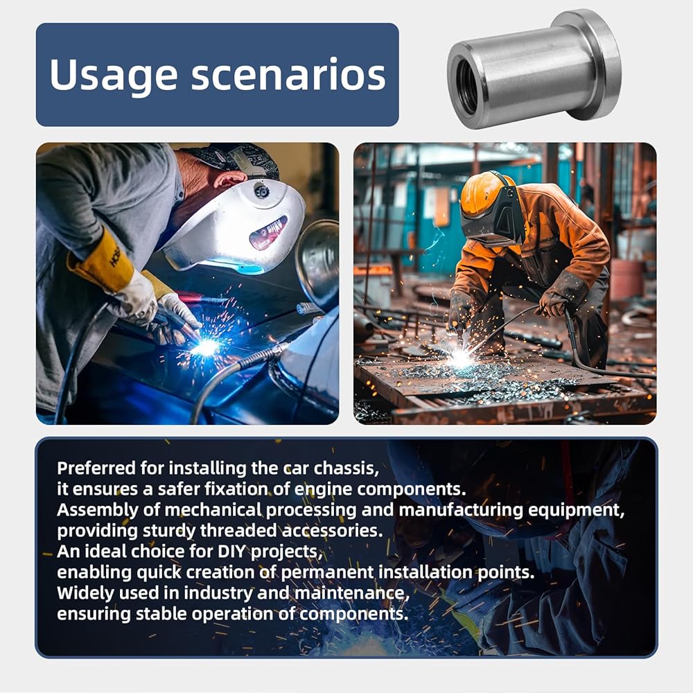 【Durable Material】Made of low-carbon steel, these welded nuts possess sturdy and reliable performance. They prevent loosening and slipping. With excellent welding properties, they are firmly fixed after welding and will not crack, providing long-term stable support for your project.