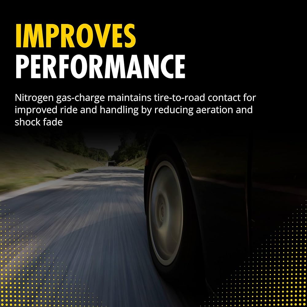 • IMPROVES PERFORMANCE -- Nitrogen gas-charge maintains tire-to-road contact for improved ride and handling by reducing aeration and shock fade