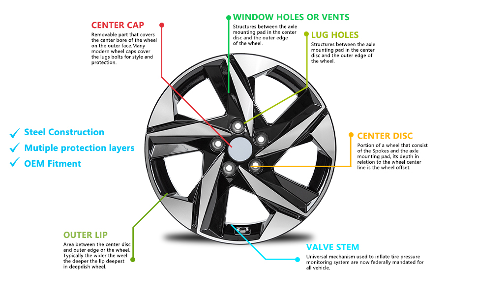 ما هو متضمن - السعر للعجلة فقط. لا يتم تضمين الغطاء المركزي والعروات ومستشعر ضغط الإطارات. إذا كنت تقوم باستبدال عجلة تالفة، فإن الغطاء المركزي الأصلي والعروات ومستشعر ضغط الإطارات سيعمل على العجلة الخاصة بنا