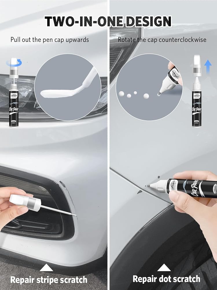 [تصميم 2 في 1] تأتي كل زجاجة من طلاء السيارة مع رأس قلم وفرشاة، مما يجعل إصلاح خدوش طلاء السيارة أكثر دقة وأسهل. ① قم بفك غطاء القلم، رأس القلم مناسب للخدوش النقطية. ② قم بلف غطاء القلم عكس اتجاه عقارب الساعة، الفرشاة مناسبة للخدوش الشريطية. إن الفعالية العالية من حيث التكلفة وسهولة الاستخدام تجعل طلاء السيارة هذا أداة لا بد منها لأصحاب سيارات الجيب