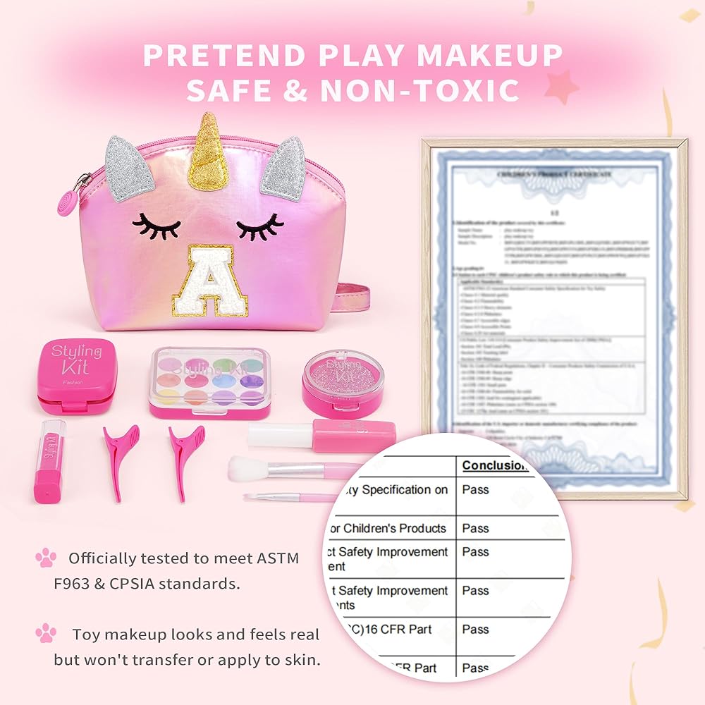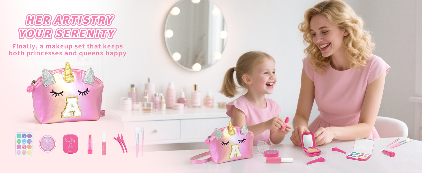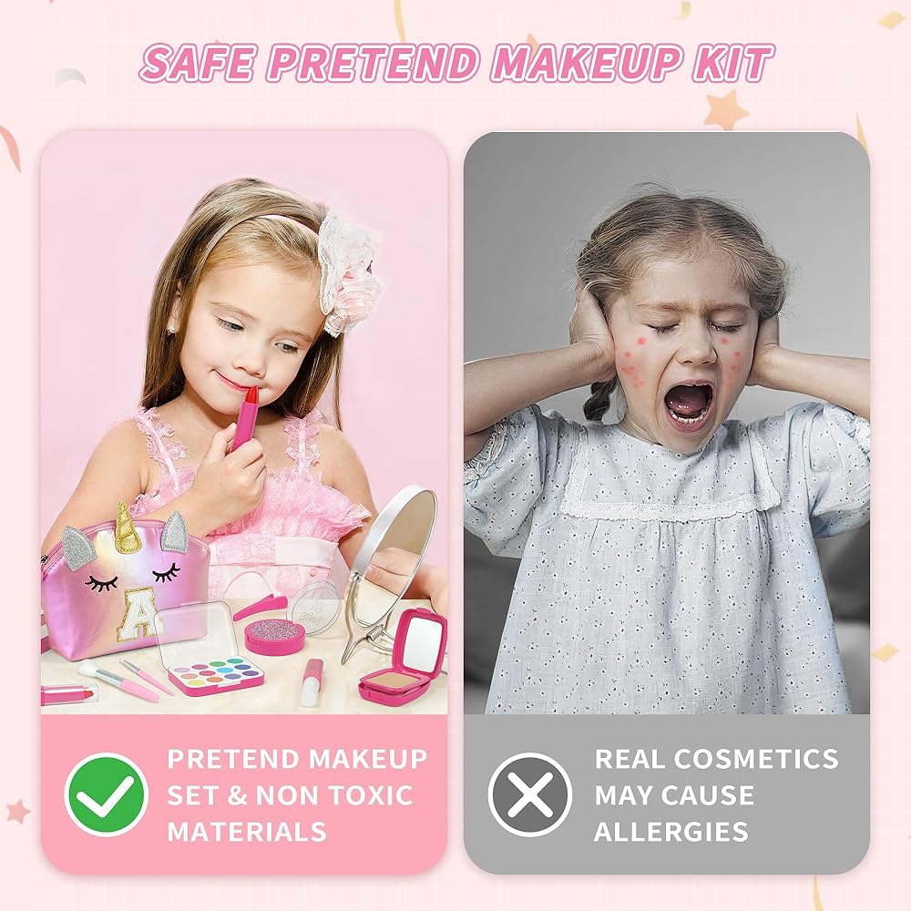 • مجموعات مكياج فاخرة: مجموعة المكياج المزيفة من يولايف تحتوي على ظلال العيون، وبودرة الوجه، وقرص مسحوق ذهبي، وملمع الشفاه، وأحمر الشفاه، وفرشتين، ودبابيس شعر. جميع مستحضرات التجميل الخاصة بالأطفال تأتي معبأة في حقيبة يونيكورن جميلة. تثير هذه المجموعة الشاملة ساعات من لعب الأدوار الإبداعية.