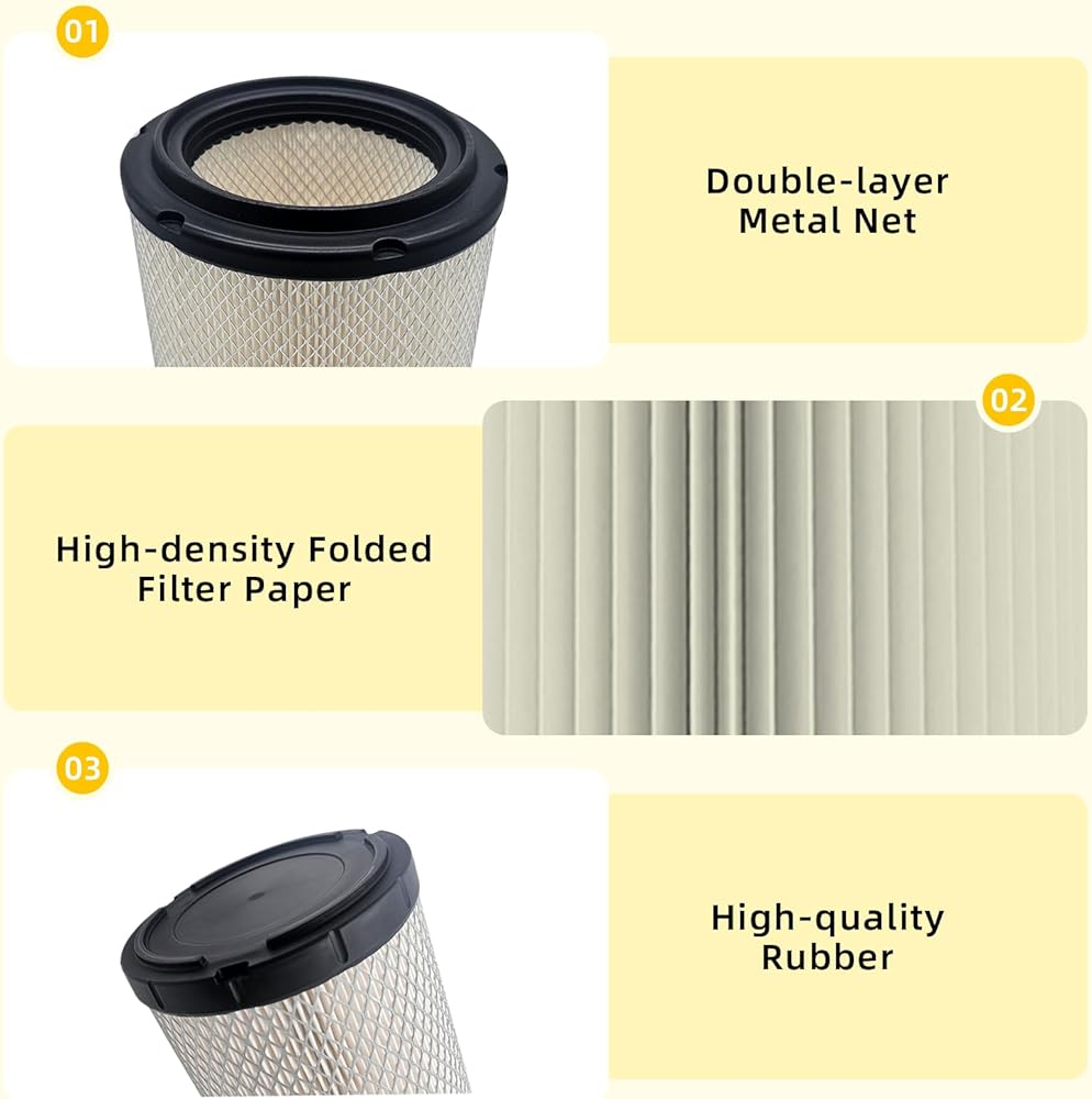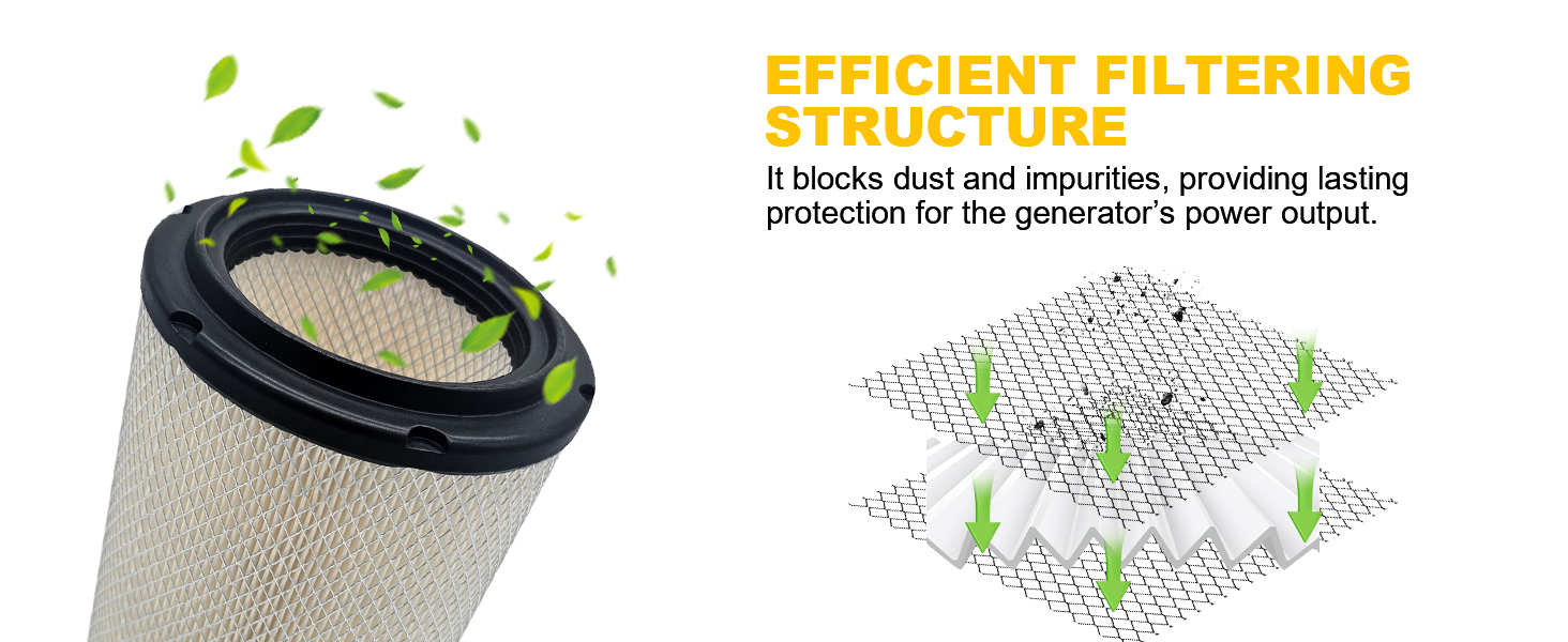 • [حماية المحرك]: تعتمد منتجاتنا على ورق ترشيح مطوي عالي الكثافة، ومطاط PU متين، وشبكة معدنية مع دعم وقائي مزدوج الطبقة. يمكنها حجب الغبار والجسيمات الموجودة في الهواء بشكل فعال وضمان عمل المحرك بسلاسة.