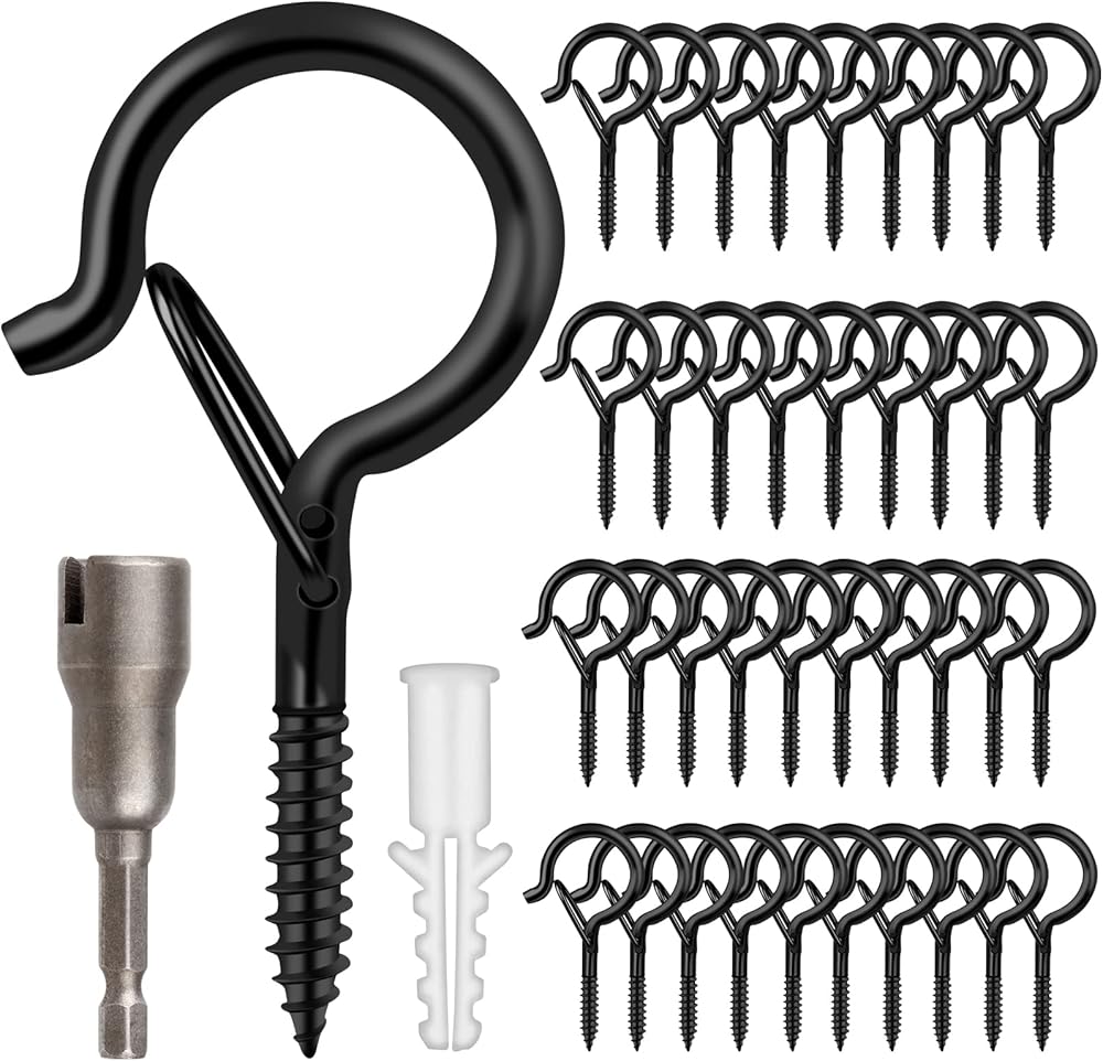 - Eye Hooks Screw Holds light items weighing up to 40lbs.