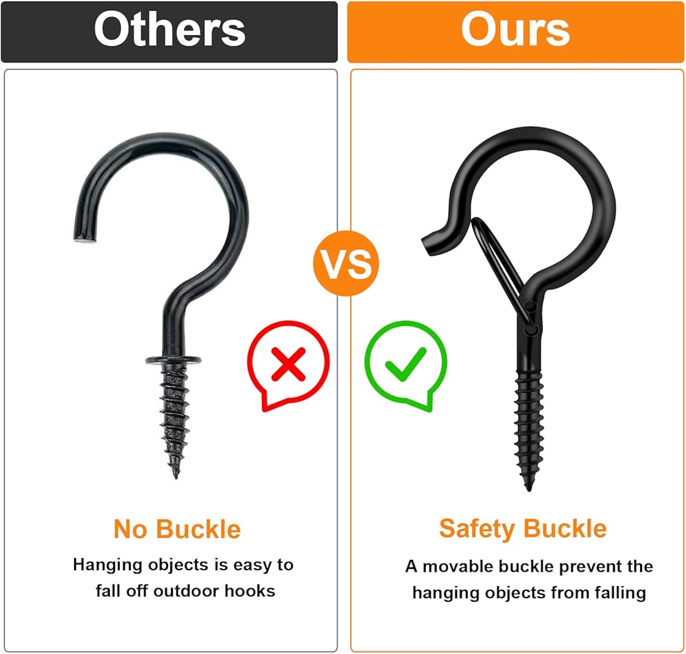 - Patio light hooks with safety buckle design,windproof, anti-falling.