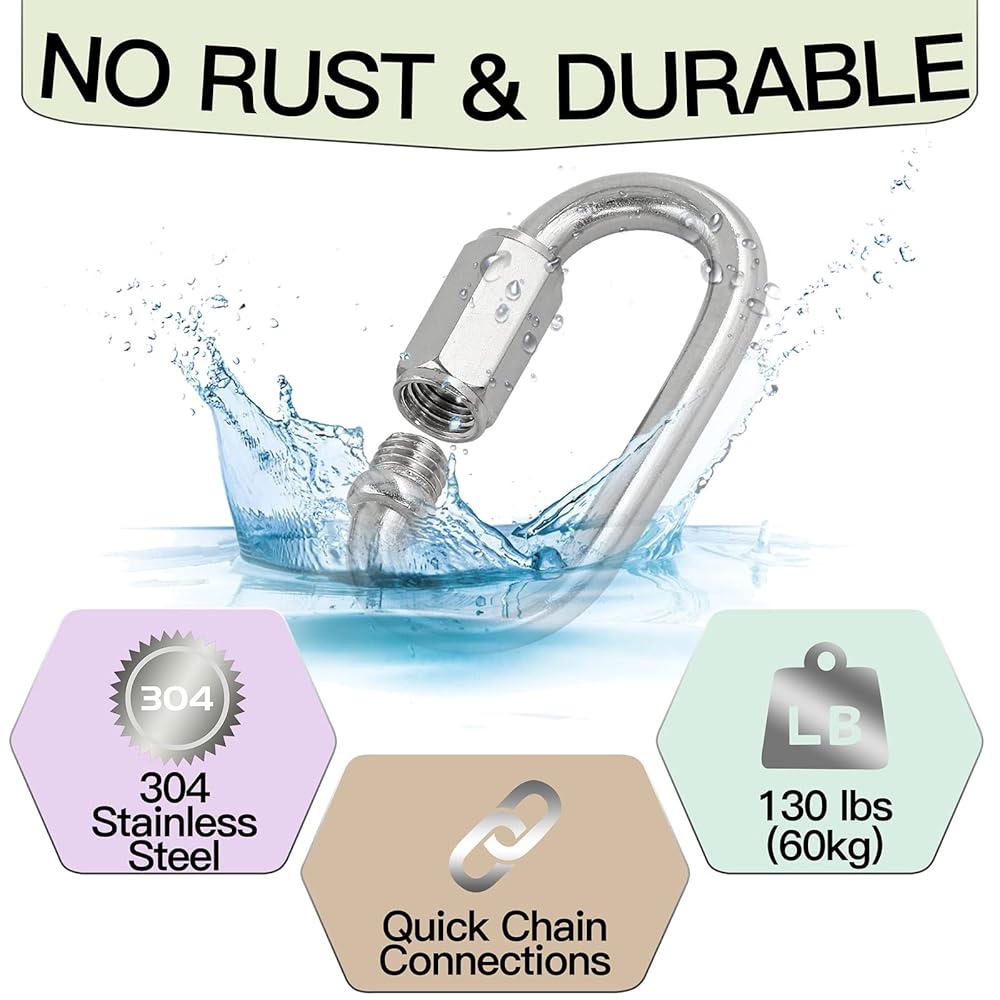 2.The chain quick link is made of high-quality 304 stainless steel, with excellent hardness and toughness, durable, waterproof, rust-proof and corrosion-proof.