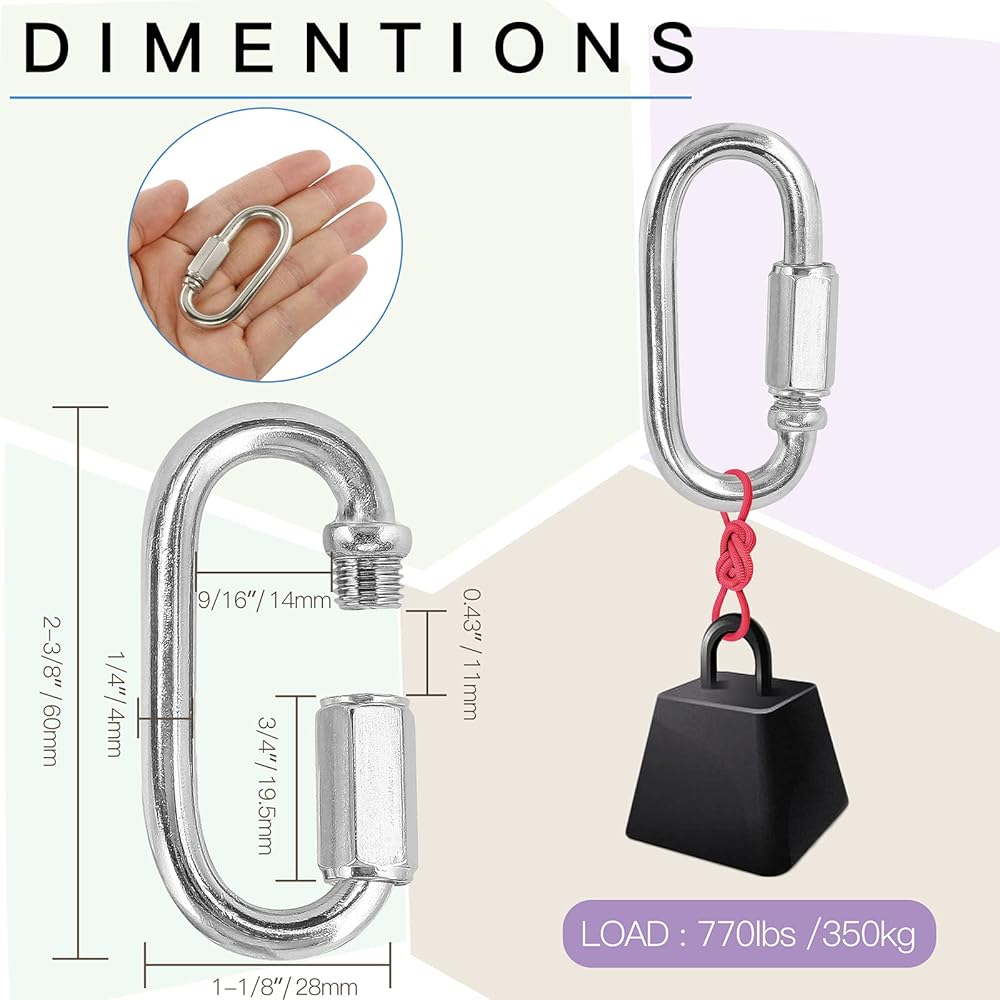 1.The safe loading capacity of each chain quick link is 75kg / 170lbs.