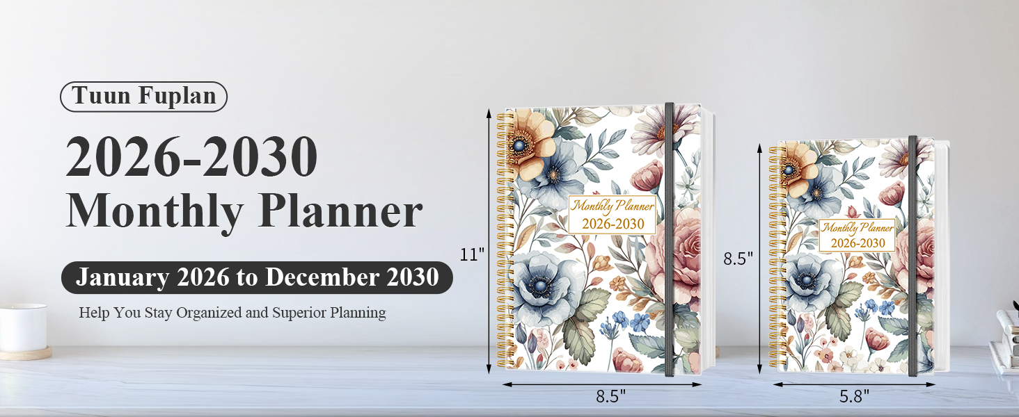 Monthly Planner 2026-2030 - Calendar planner from January 2026 to December 2030, featuring 60 months of monthly pages for easy year-round planning. Monthly planners includes full monthly view pages for each month. Separate pages with full monthly view for more detailed planning.