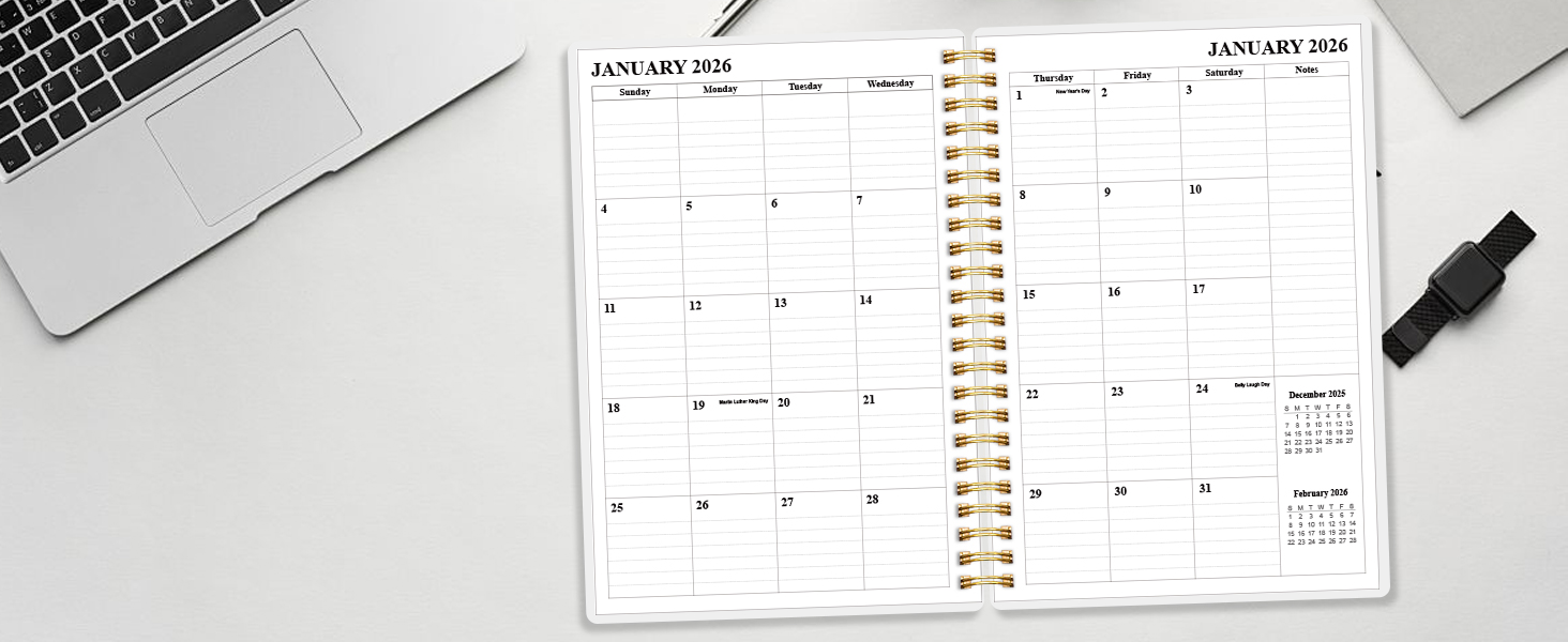 Monthly Planning – Each monthly calendar spread contains an overview of the month, a notes section for important tasks and reference calendars. Major holidays listed helps you to keep your special dates and dream vacations at the top of your mind during the year.