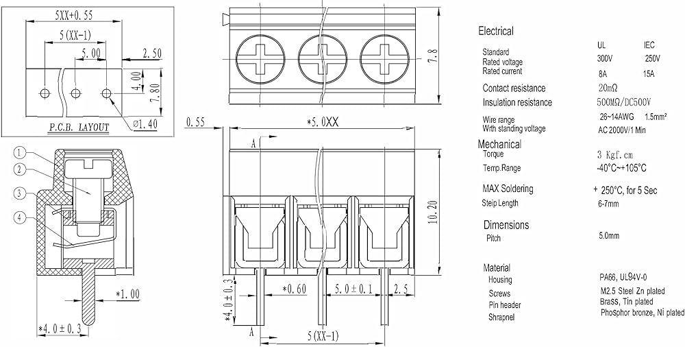 هل سئمت يومًا من خروج الموصل من لوحة التوصيل الخاصة بك؟ لقد فعلنا ذلك، لذلك قمنا بتطوير كتلة طرفية لولبية مع دبوس طويل للغاية لن يخرج. نحن الوحيد في أمازون الذي يحمل كتلة طرفية لولبية بطول 6 ملم، ويتراوح طول دبوس أي شخص آخر من 3.5 إلى 4 ملم. إنها تكلف أكثر قليلاً، ولكن السنتات الإضافية القليلة تستحق ذلك إذا كنت تخطط لاستخدامها في ألواح التزلج. يمكن أن تستوعب أحجام الأسلاك من 22 إلى 14 ايه دبليو جي ولها تصنيفات 16 أمبير و250 فولت. المسافة بين الملعب/الدبابيس 5 ملم بحيث تتناسب مع ألواح التوصيل القياسية. تم تصميم الموصلات لتكون متشابكة حتى تتمكن من بناء موصل بطول مخصص. بالإضافة إلى إرادة العمل على لوح التوصيل، يمكن أيضًا لحامها في لوحة دوائر مطبوعة كما هو الحال مع أي كتلة طرفية لولبية.
