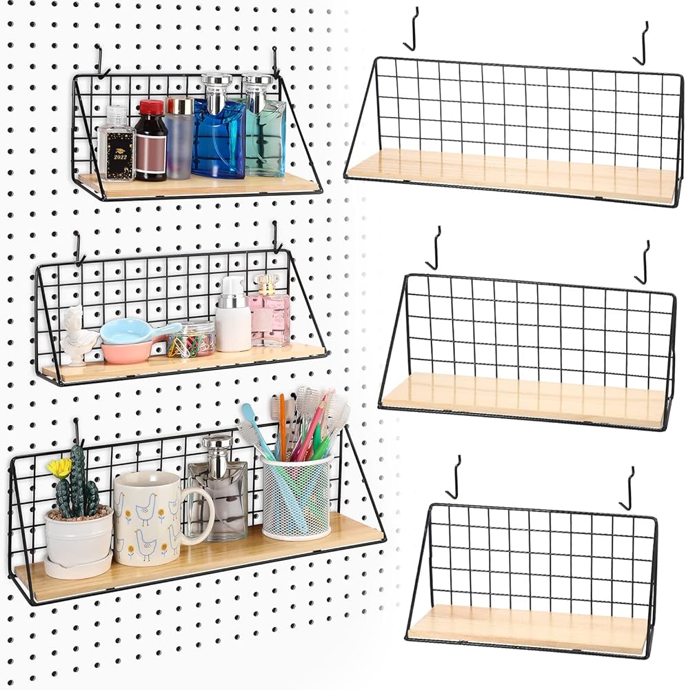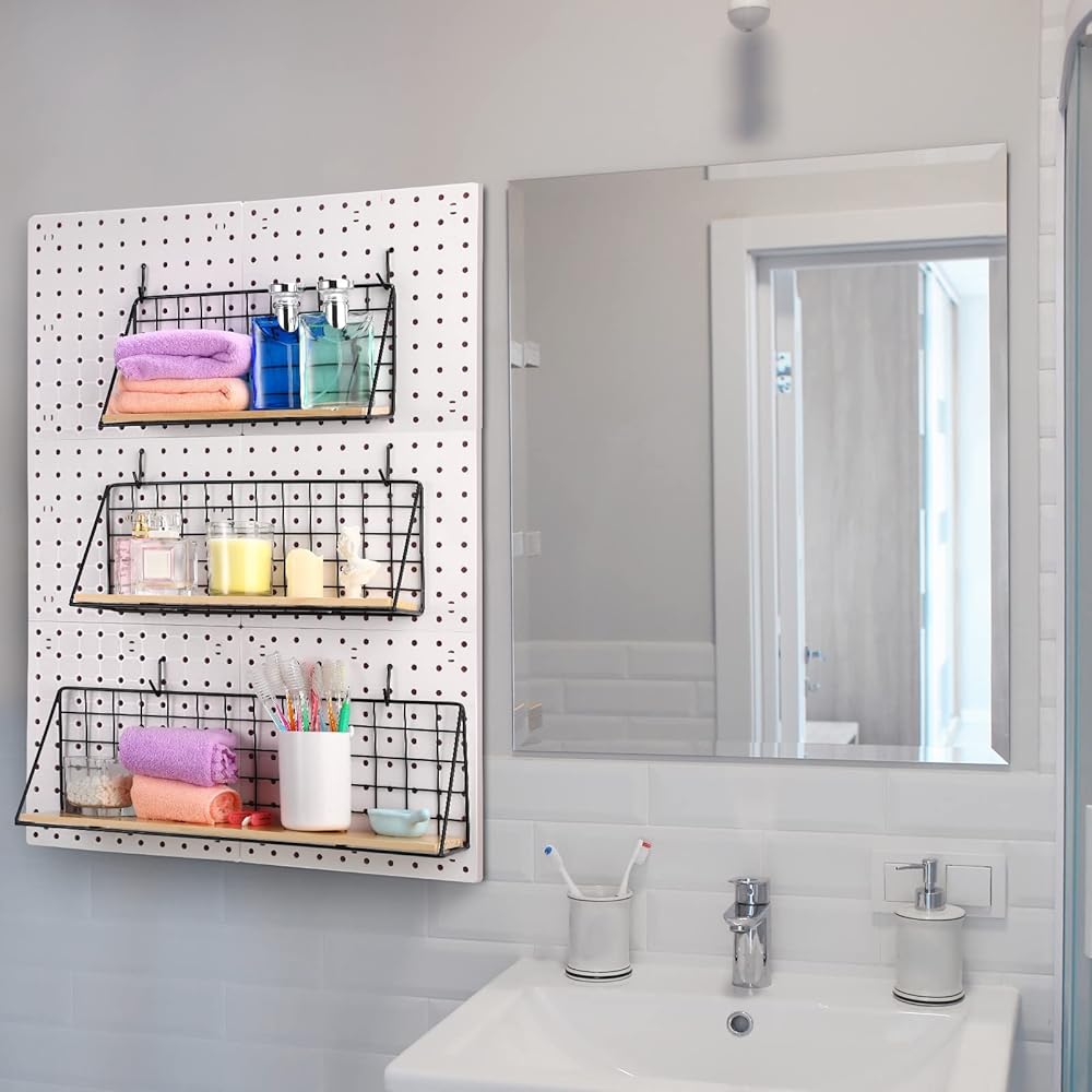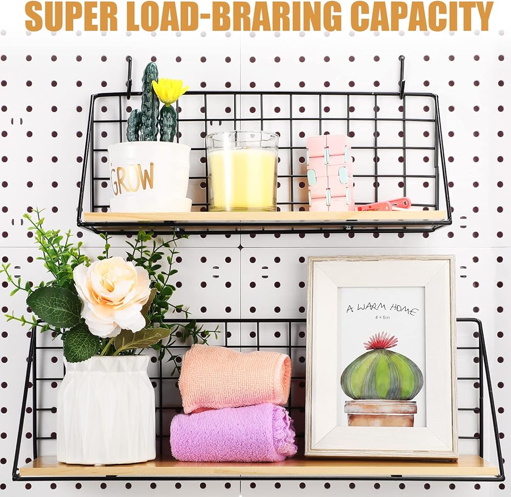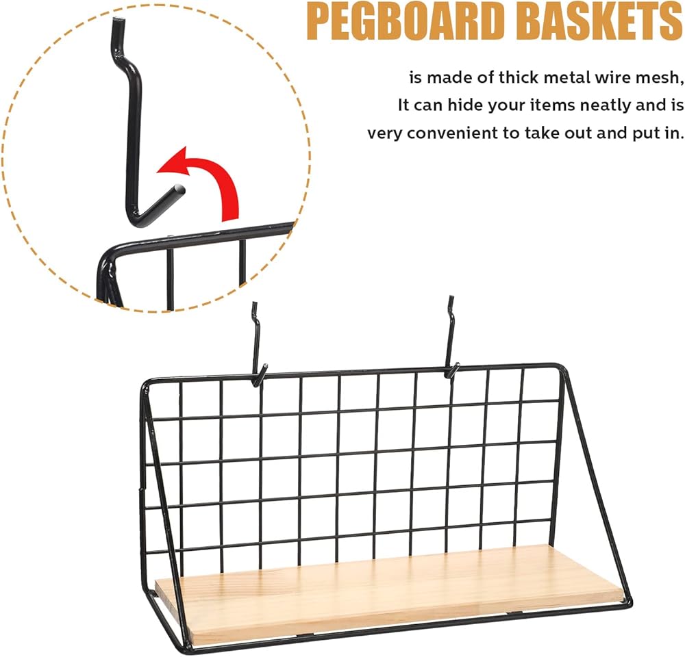 Sturdy and Solid Material: the pegboard shelves set is made of quality wood pegboard shelves and strong steel basket, these materials are solid and study, resistant to break and deform, effectively ensuring nice support for your supplies, as well as heavy items, and they can serve you for a long time