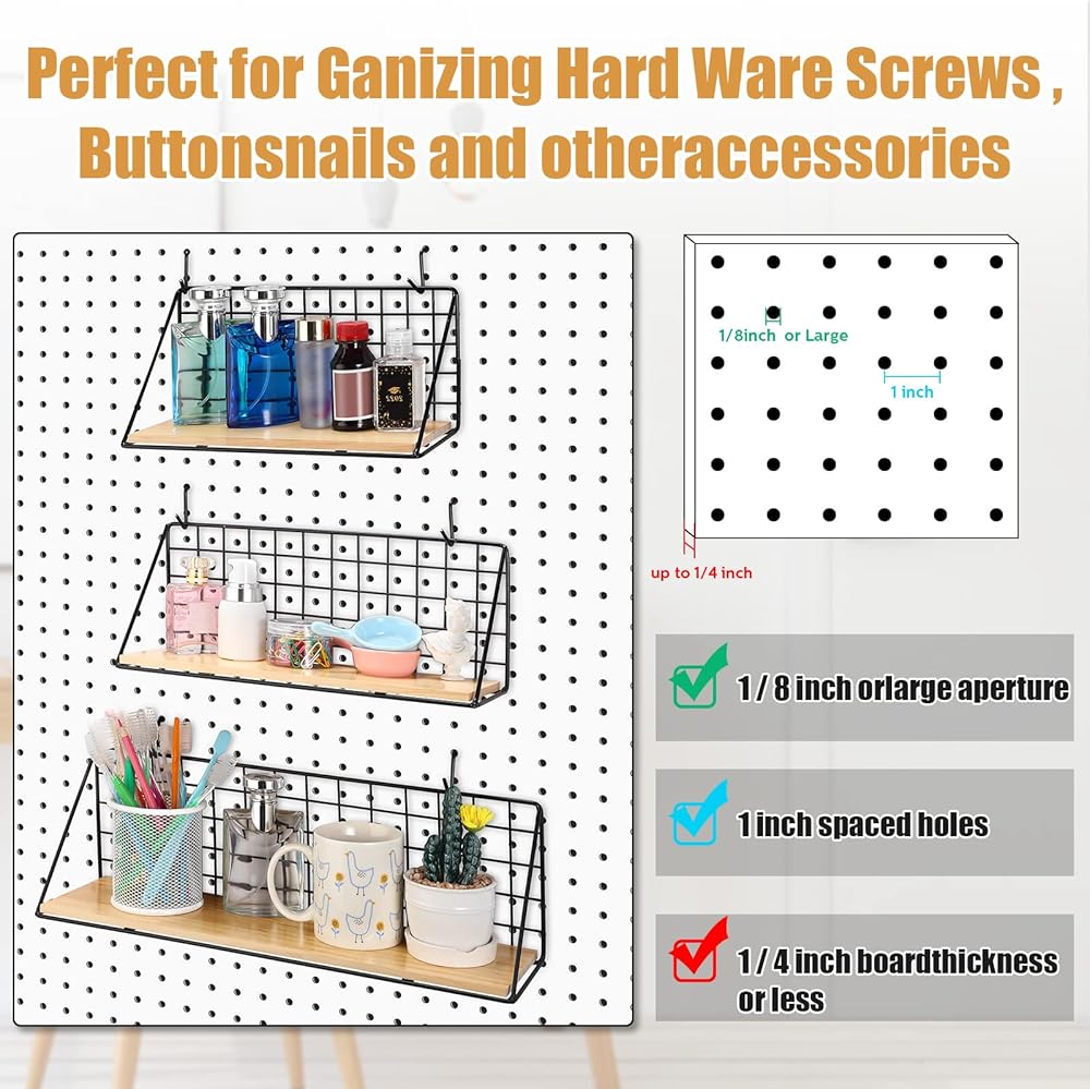 Wide Range of Applications: The Pegboard Shelf sits stably on the pegboard brackets, even when holding a large number of items on it, so these pegboard shelves with brackets can be applied to the kitchen, laundry room, office, craft room, garage, workshop, and more occasions, in that way you can get things easier