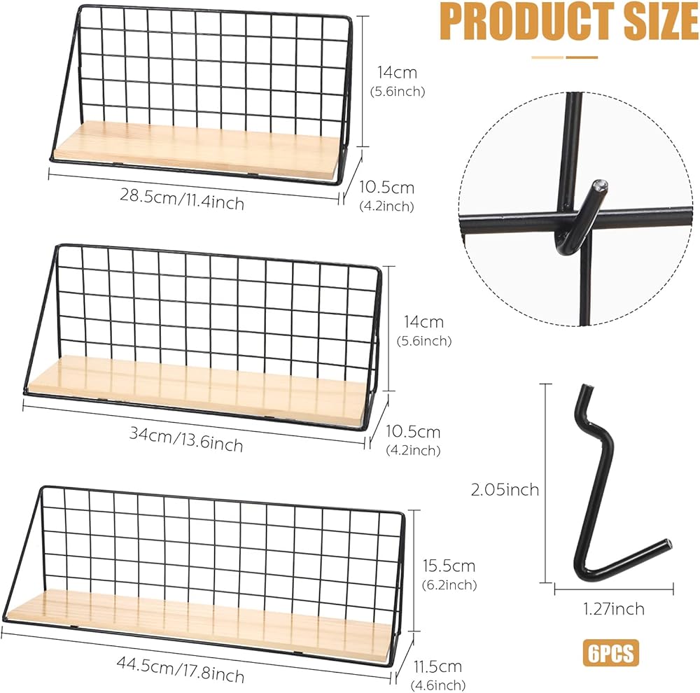 Valuable Package: the pegboard shelf set comes with 3 pieces of pegboard shelves with steel pegboard brackets, and 6 pieces of black hooks, sufficient quantity and a nice combination for you to choose, and they can save your kitchen, countertop, garage from messy jars, books, and tools