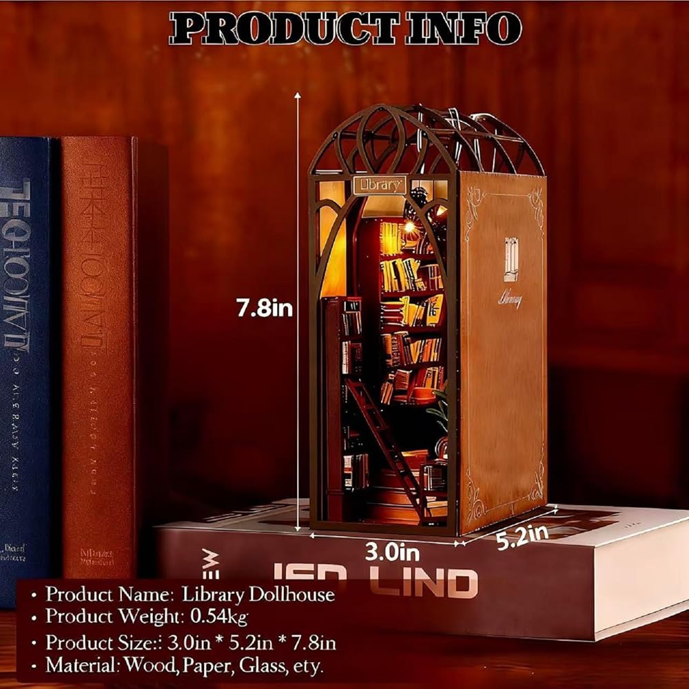 • 【مشهد مكتبة ثلاثي الأبعاد جذاب】قم بتحويل رف الكتب أو المكتب الخاص بك باستخدام هذه الديوراما المعقدة التي تتميز بإضاءة LED تعمل باللمس للإضاءة المحيطة؛ لهجة زخرفية مثالية وإضاءة ليلية.