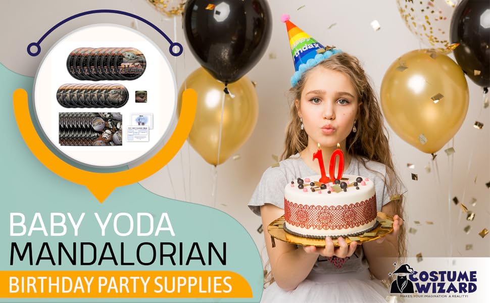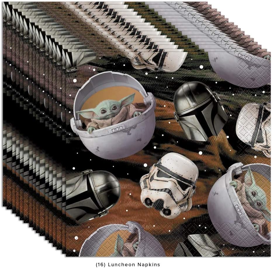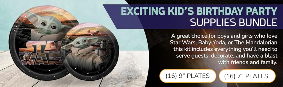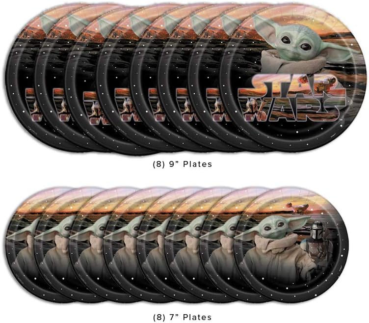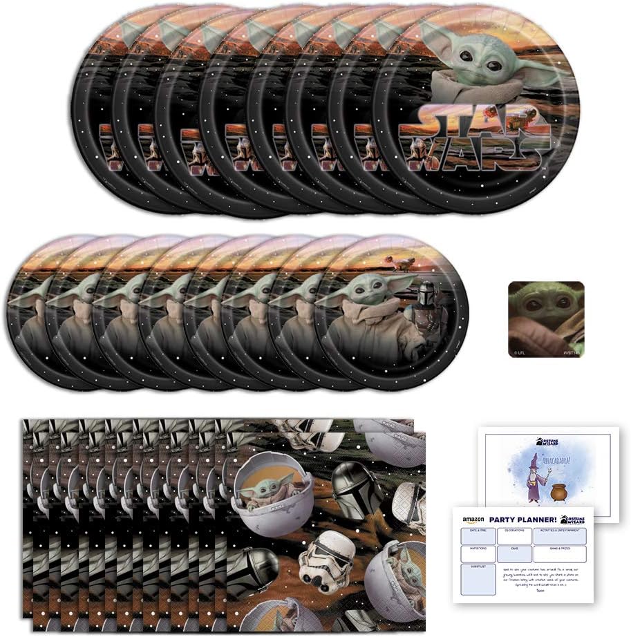 لوازم حفلات أعياد الميلاد السعيدة للأطفال من بيبي يودا ماندالوريان، تكفي 8 أشخاص، ديكور وأدوات طعام مع أطباق ومناديل وملصقات وقائمة تخطيط الحفلات