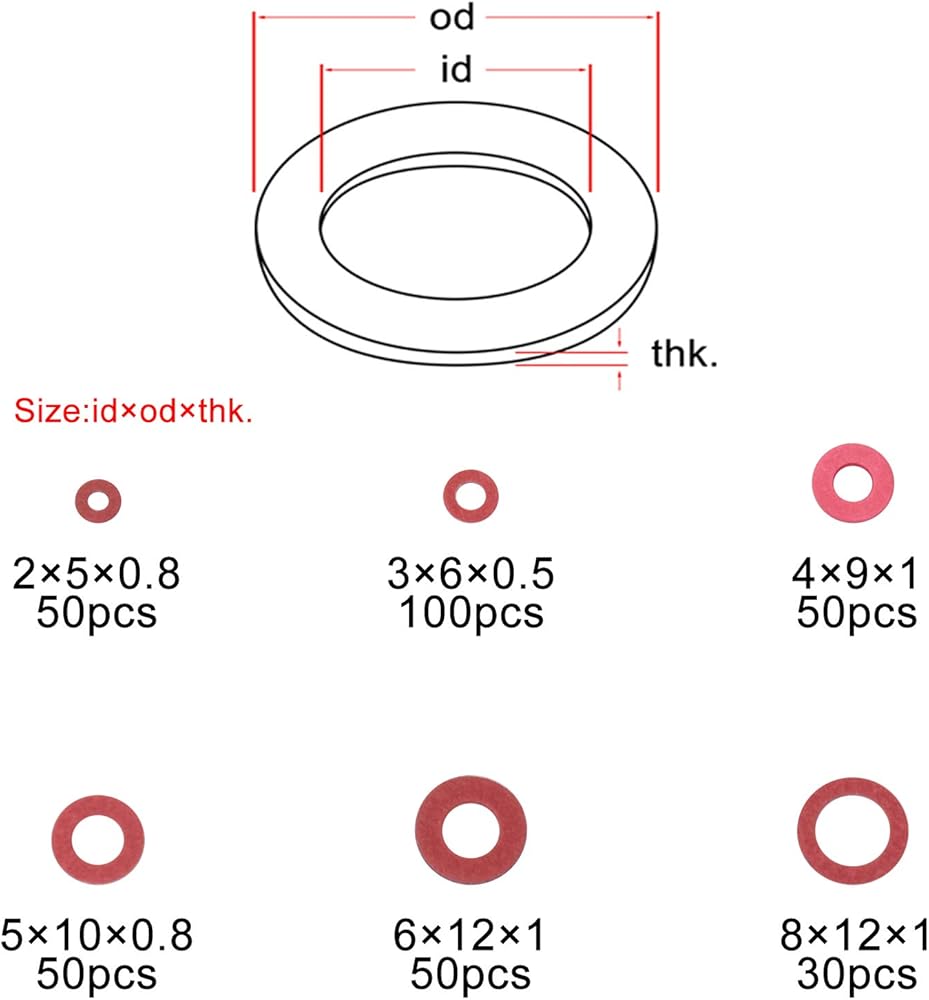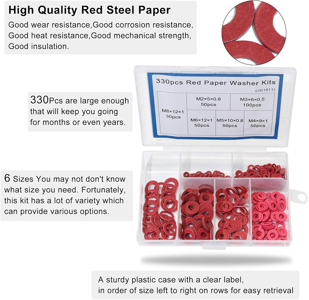 330PCS M2 M3 M4 M5 M6 M8 Red Vulcanized Fiber Insulation Washer Gasket