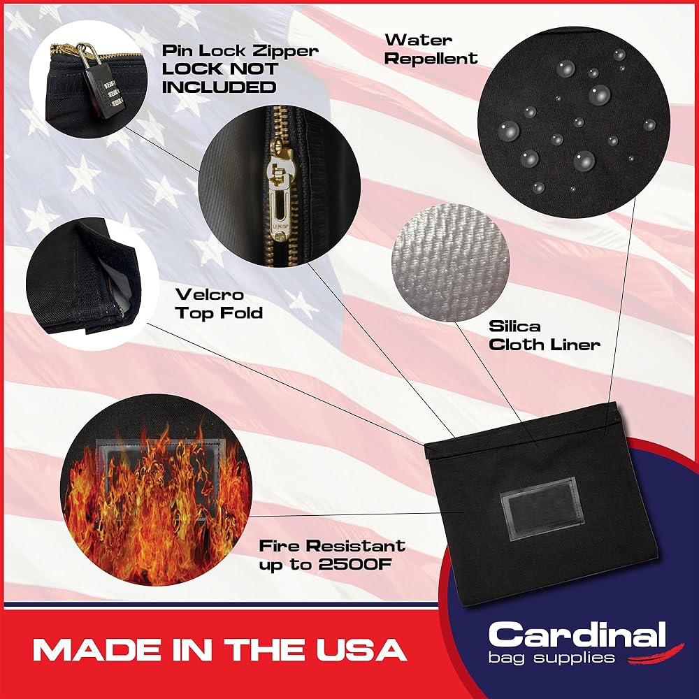 مستنداتك في أيدٍ أمينة: في حالة الطوارئ، فإن أهم مستنداتك في أيدٍ أمينة مع لوازم حقائب كاردينال! مقاومة للحريق والماء، تحمي حقيبة المستندات الخاصة بنا مستنداتك، وتبقيها سليمة في أي موقف!