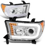 DNA MOTORING HL-LB-TT07-BK-AM زوج LED DRL Tube + مجموعة مصابيح أمامية لجهاز عرض إشارة الانعطاف متوافقة مع Toyota Sequoia 08-17 / Tundra 07-13، أسود/كهرماني