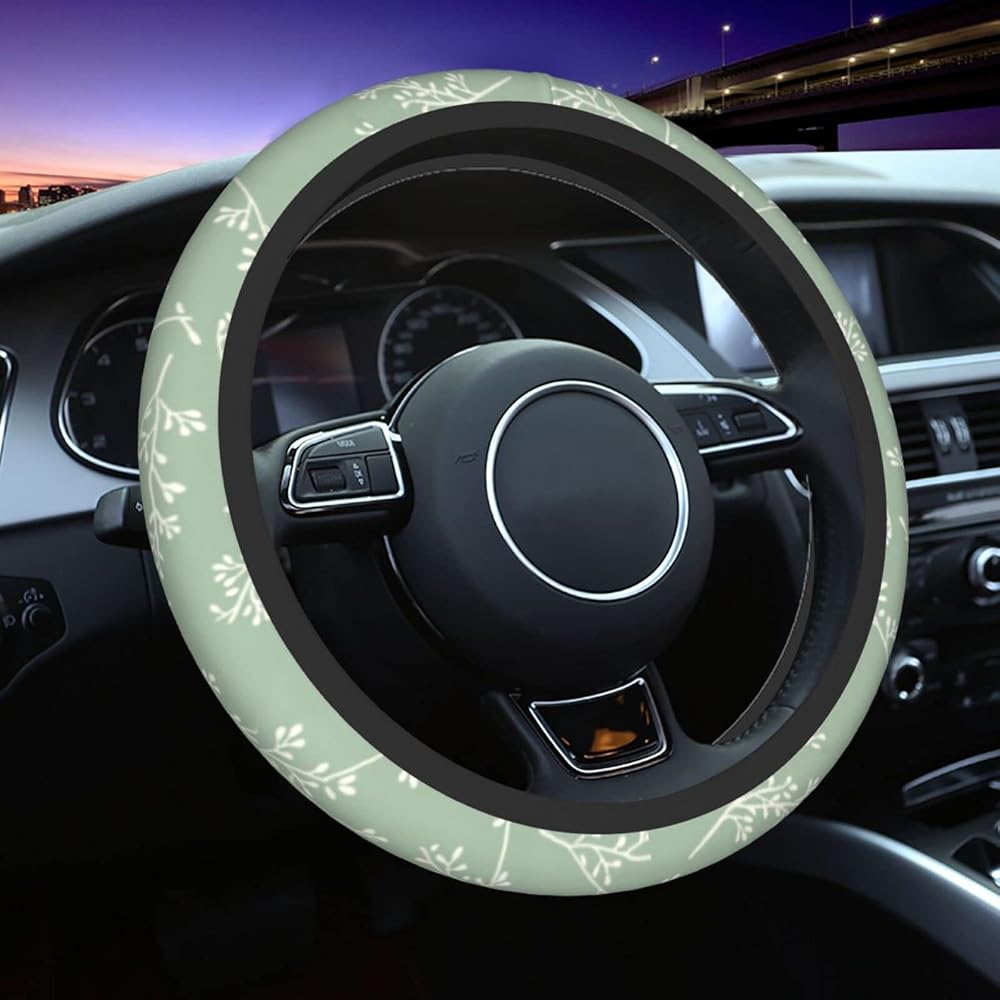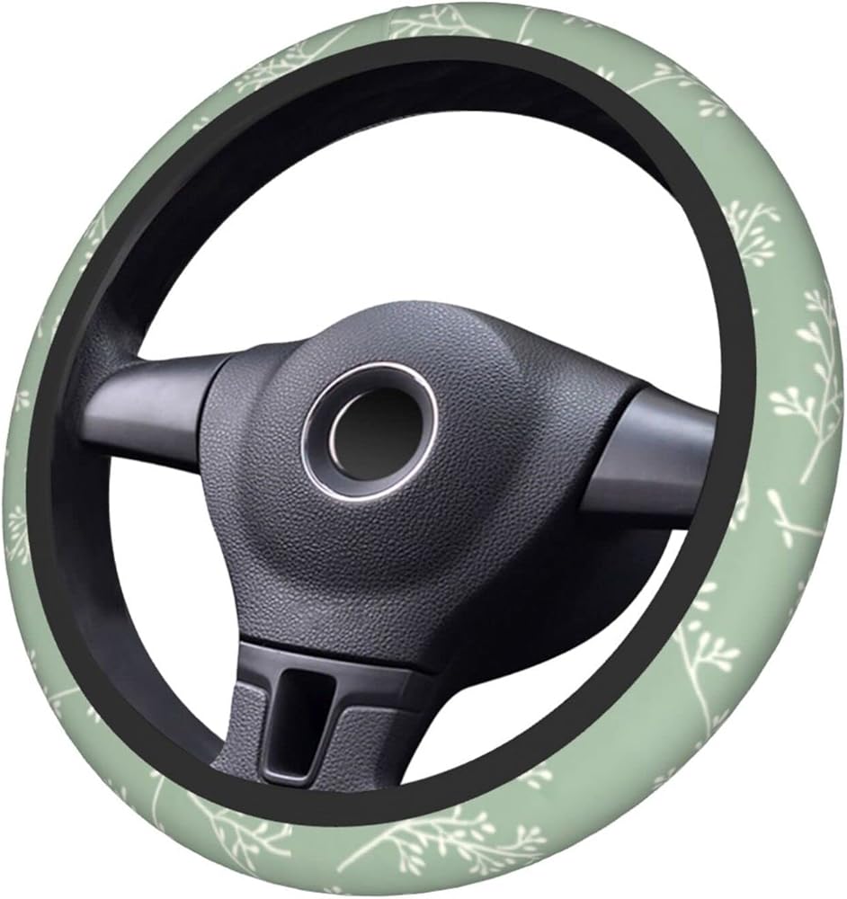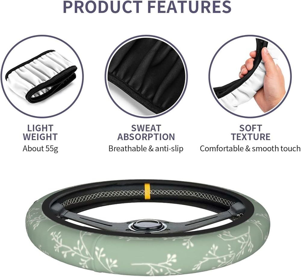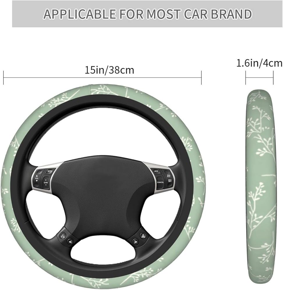 • 【Universal Size】The sage green steering wheel cover compatable with the size of steering wheels from 14.5" to 15" (37 cm to 38 cm) in diameter. Universal size fits for most vehicles, suvs, vans, trucks.Please measure your car steering wheel spacing before using to avoid unnecessary waste.