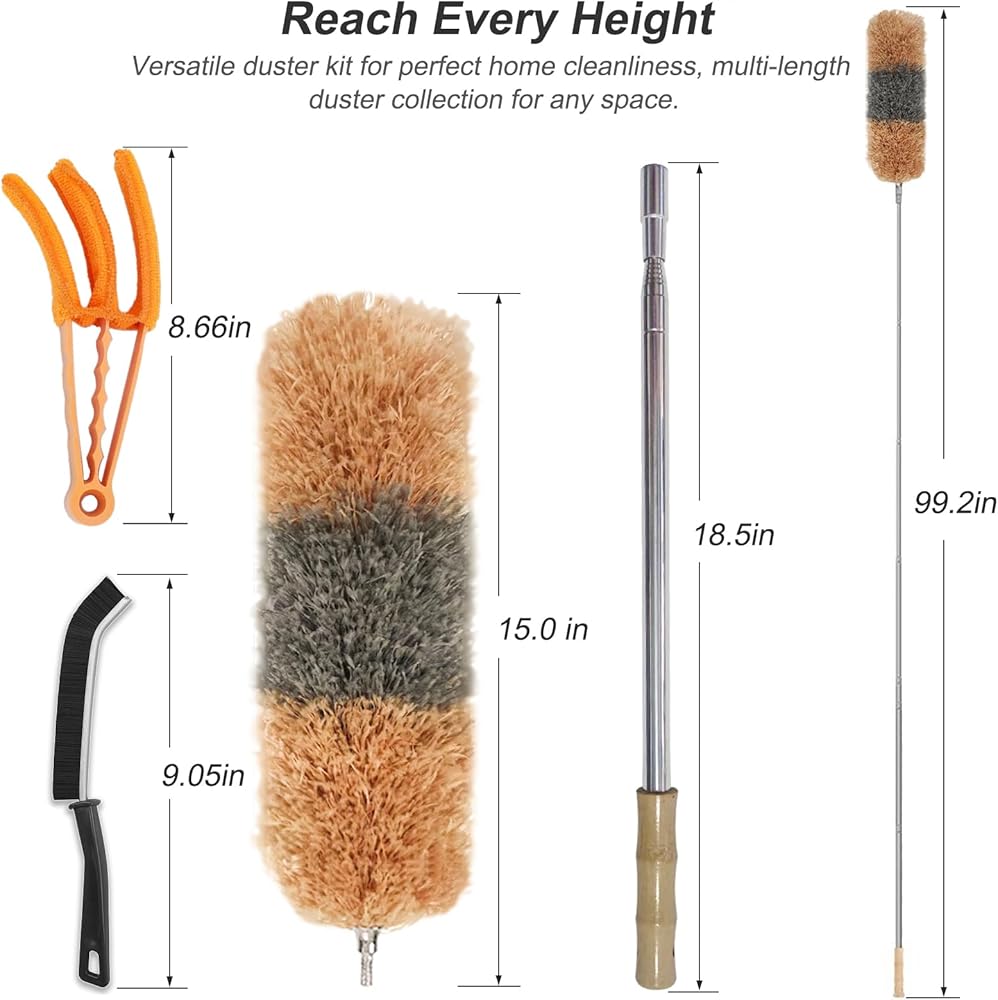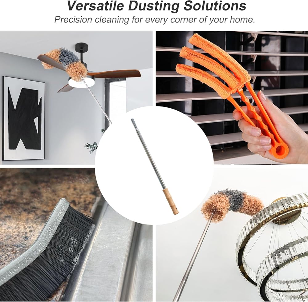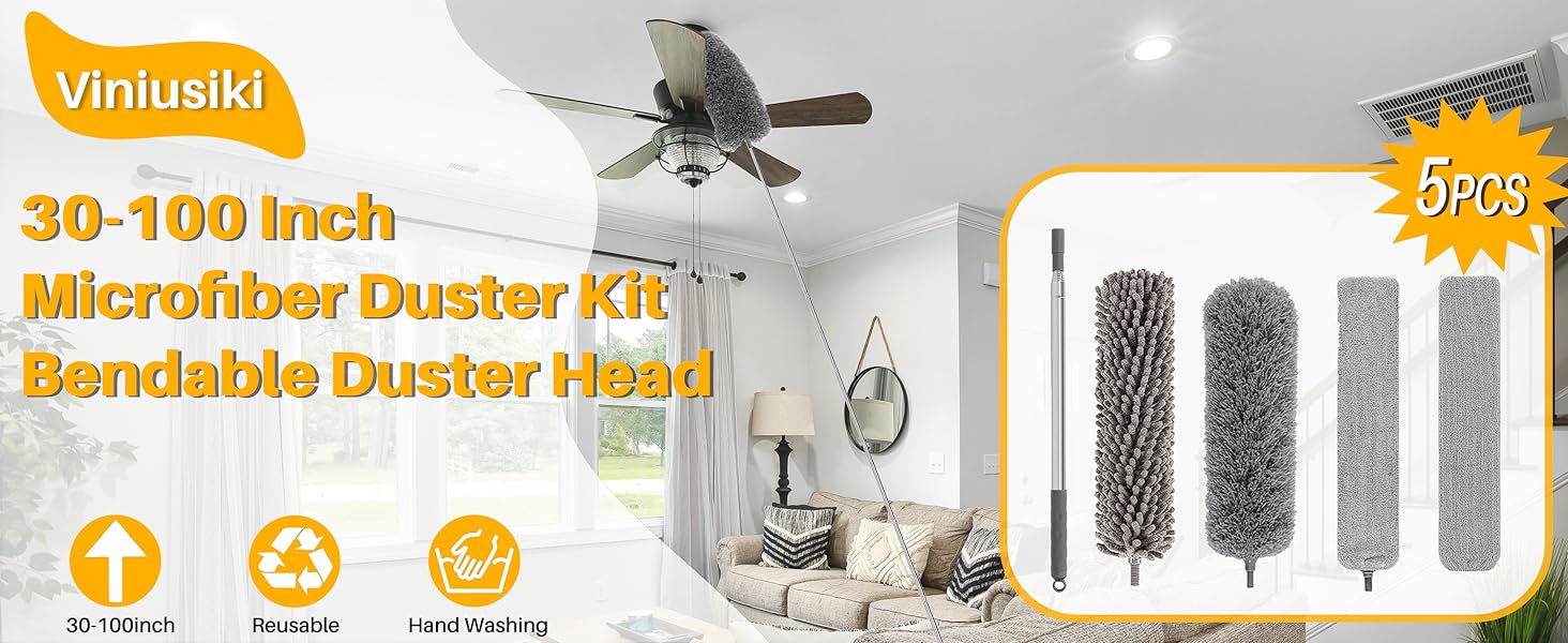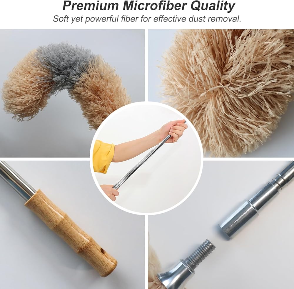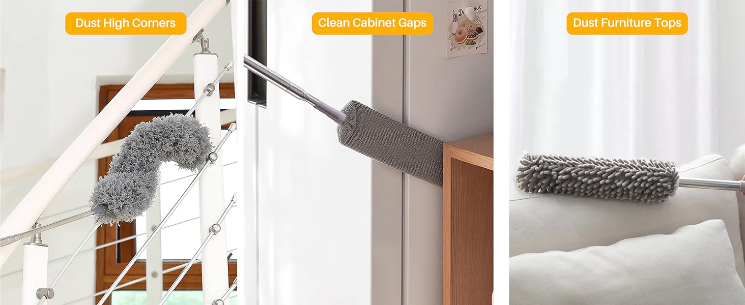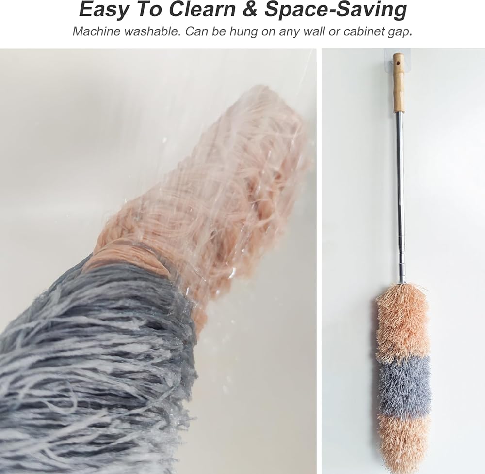 - استخدام متعدد الأغراض: مثالي لتنظيف مراوح السقف، والأسقف العالية، وأرفف الكتب، والستائر، وأسطح السيارات، والزوايا التي يصعب الوصول إليها بدون سلم.