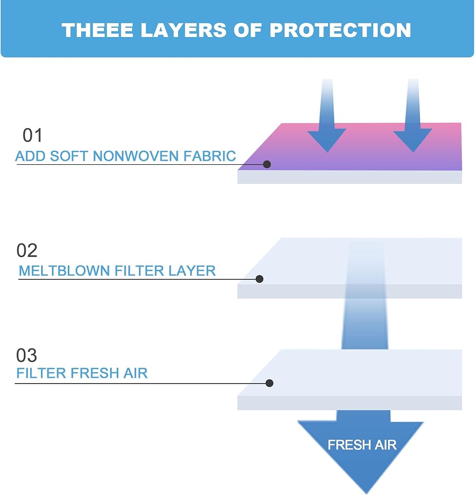 - ✅✅ سهولة التنفس - ببساطة ضع القناع فوق الأنف والفم، ضع حلقة الأذن حول كل أذن، واسحب القناع فوق ذقنك واسكب القناع ليتناسب بشكل مريح حول الأنف والذقن.