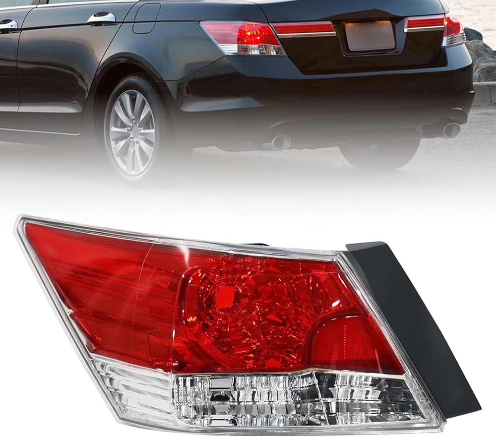 Fitment: AUTOARIUM TailLight, will be compatible with 2008 2009 2010 2011 2012 Honda Accord. Replacement for 33550-TA0-A01 HO2800172 Enhanced Durability: Built with high-impact housing to withstand shocks and vibrations, ensuring long-lasting performance even in tough driving conditions Weather-Resistant Design: Fully sealed with silicone to protect against environmental damage, including freezing, fogging, and fading, maintaining clarity and functionality over time Improved Safety and Style: Upgrade your vehicle's lighting for better visibility, making your car more noticeable to other drivers while enhancing its overall appearance Installation & Package: 1 × Left Side Tail Light. Bulbs are not included. Designed for a hassle-free, plug-and-play setup—no drilling or modifications required