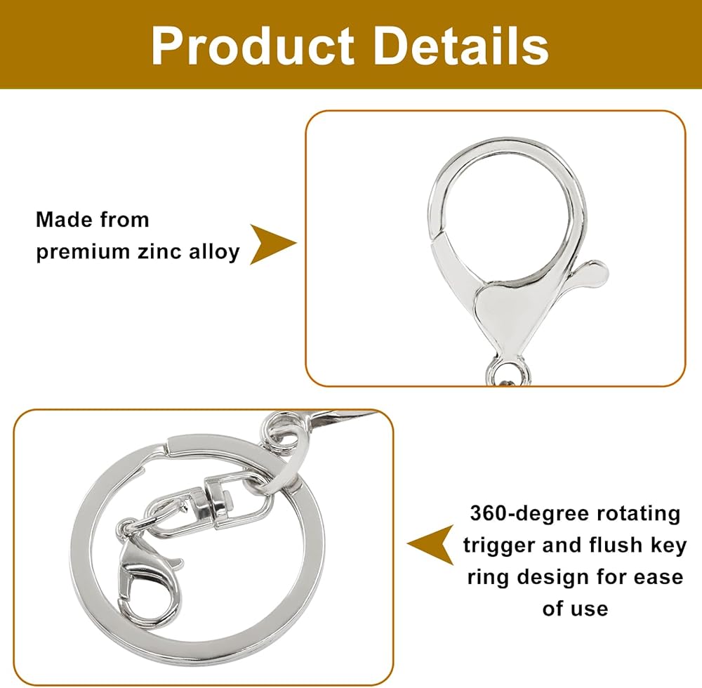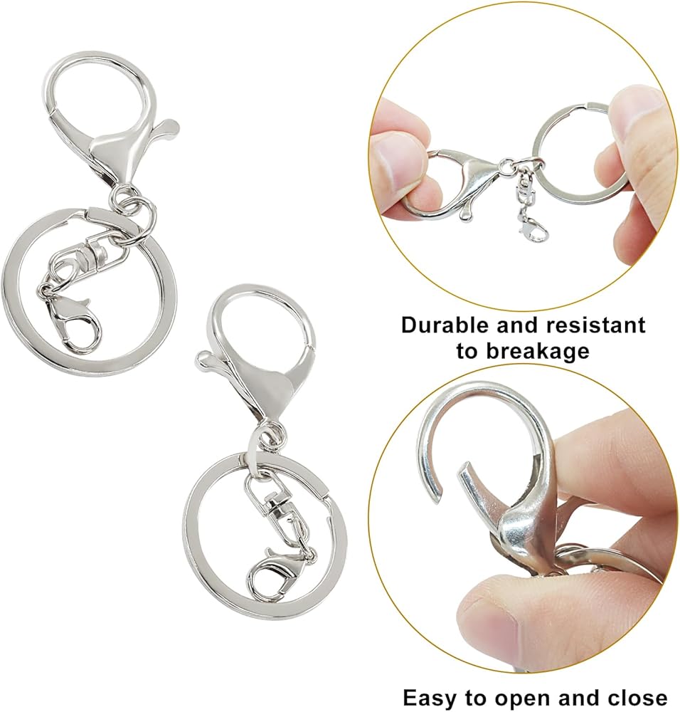 Functional Design: Each lobster clasp features a 360-degree rotating trigger for easy attachment and removal of items. The flat keyring design allows for convenient addition of keys, charms, and decorations, enhancing daily usability.