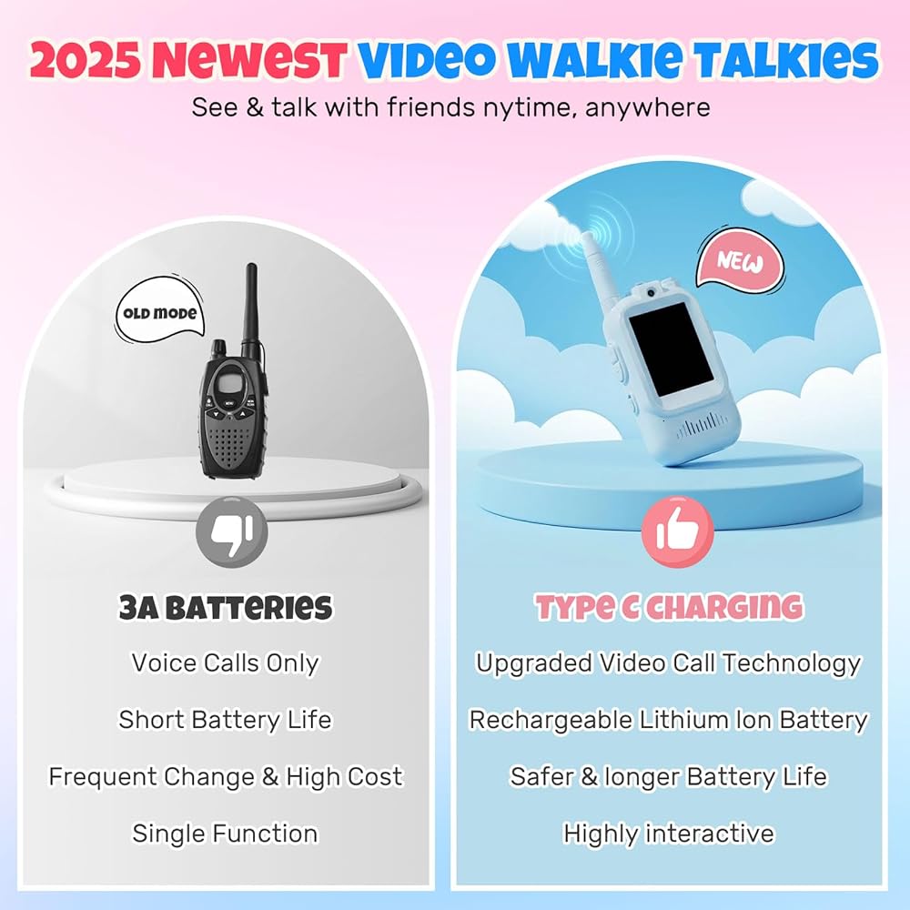 هدية مثالية للأولاد والبنات من سن 3 إلى 10 سنوات - تعد أجهزة الاتصال اللاسلكي بالفيديو من MECARE هدية مثيرة لأعياد الميلاد أو الكريسماس أو أي مناسبة خاصة. مع ميزات ممتعة مثل مكالمات الفيديو، ومغيرات الصوت، والتواصل طويل المدى، توفر أجهزة الاتصال اللاسلكية هذه ساعات من الترفيه، مع تشجيع الإبداع والمهارات الاجتماعية والاستكشاف.