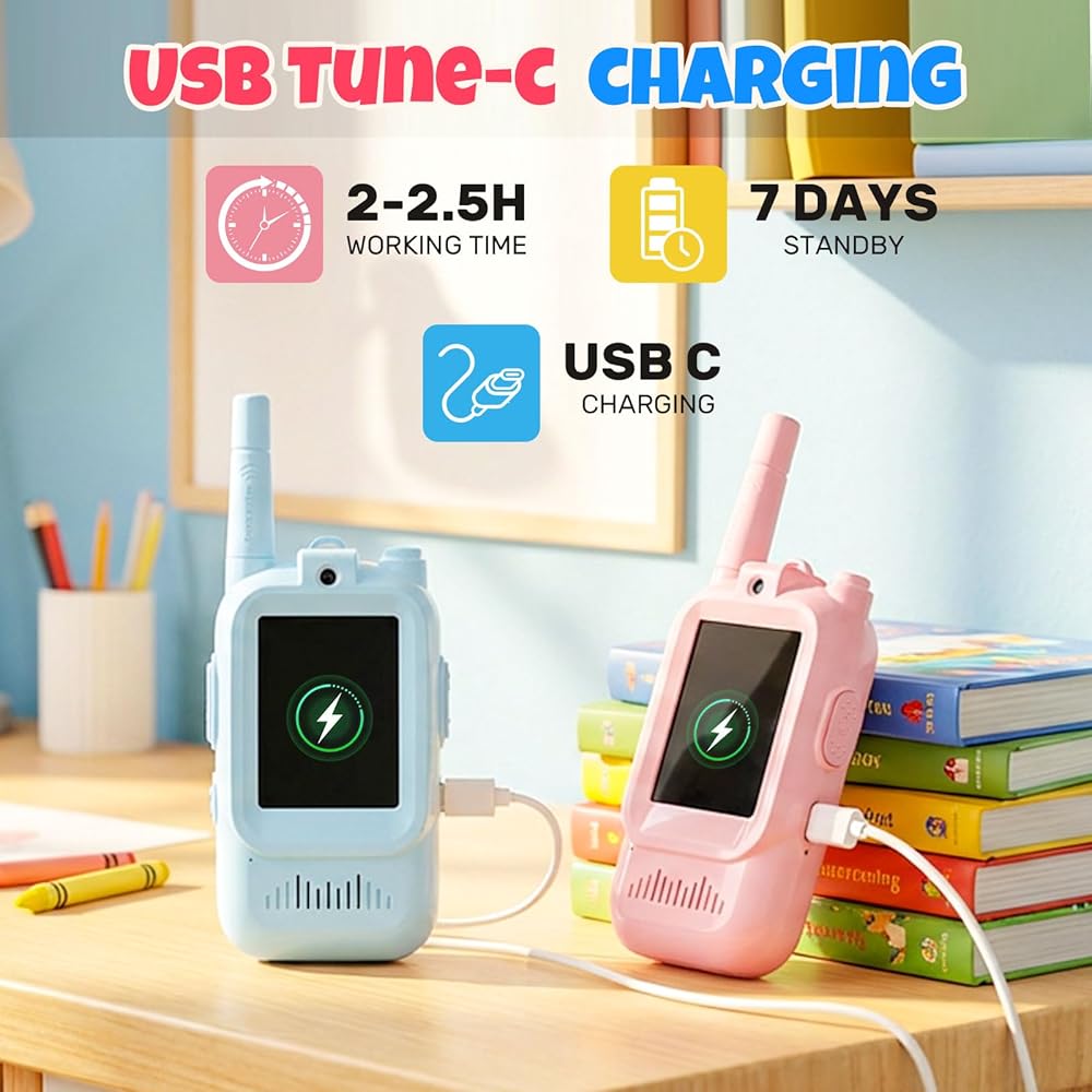 اتصال واضح وطويل المدى - توفر أجهزة الاتصال اللاسلكي القابلة لإعادة الشحن وضوحًا ممتازًا للصوت ومدى يصل إلى 100 متر في الداخل و300 متر في الخارج، مما يضمن بقاء الأطفال على اتصال حتى أثناء اللعب في الهواء الطلق أو المشي لمسافات طويلة أو الرحلات العائلية. استمتع باتصالات موثوقة وواضحة تمامًا في كل مرة.