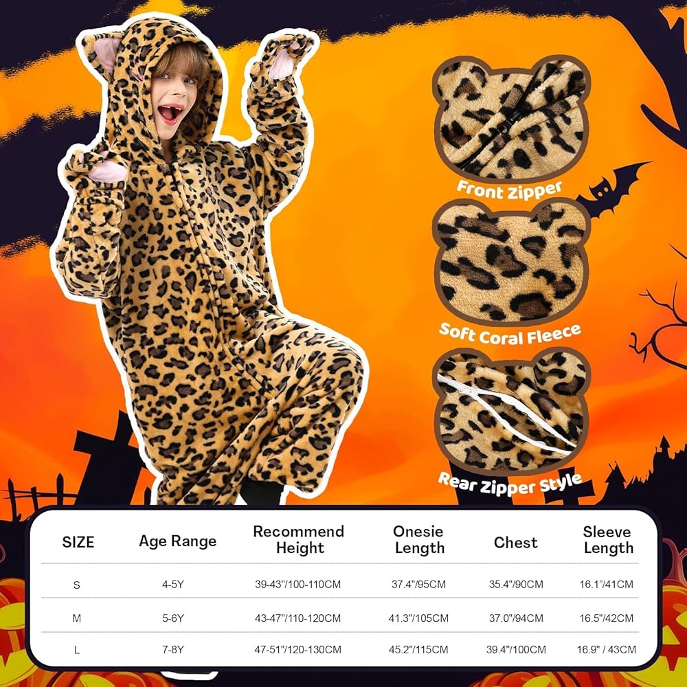 【نسيج فلانيل فائق النعومة لراحة طوال اليوم】مصنوع من نسيج فلانيل فاخر بنسبة 100%، يوفر هذا الرداء الرائع بطبعة الفهد نعومة ودفء وتهوية استثنائية، مما يجعله زي قطط مثالي للفتيات أو الأطفال الذين يحبون أزياء الفهد أو الفهد المريحة للعب.