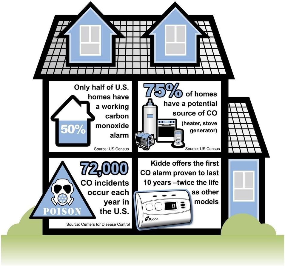 LED - يومض مؤشر LED الأخضر كل 30 ثانية للإشارة إلى أن الوحدة تعمل بشكل صحيح. مؤشر LED باللون الأحمر عند اكتشاف مستوى خطير من أول أكسيد الكربون، سينبض مؤشر LED باللون الأحمر وسيصدر صوت إنذار عالي. يتكون نمط إنذار أول أكسيد الكربون من 4 أصوات تنبيه قصيرة، تليها 5 ثوانٍ من الصمت، تليها 4 أصوات تنبيه قصيرة مع فلاش LED أحمر مطابق. ستستمر هذه الدورة لمدة 4 دقائق ثم تتغير إلى نمطين مرة واحدة كل دقيقة بعد ذلك. يومض مؤشر LED باللون الكهرماني كل ثانية للإشارة إلى أن الوحدة في وضع الخطأ. تنبيه صوتي سريع كل 30 ثانية بأن الوحدة في حالة خطأ. إشارة صوتية سريعة واحدة كل 60 ثانية هي إشارة إلى انخفاض طاقة البطارية.