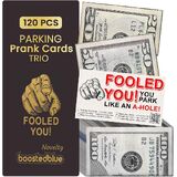 BOOSTEDBLUE خدعة وقوف السيارات! - بطاقات مزحة وقوف السيارات السيئة الثلاثية! تبدو وكأنها أموال من مسافة بعيدة - 120 كمية - اتركها تحت مساحات السيارة للسائقين المروعين على شكل حرف A!